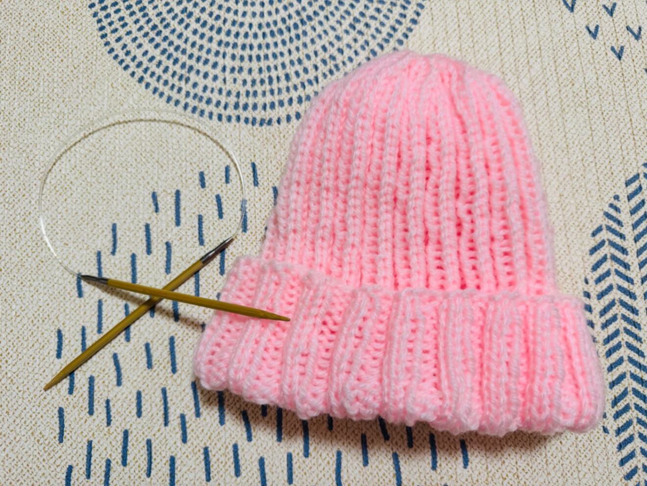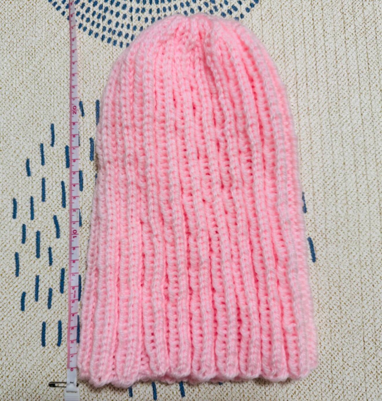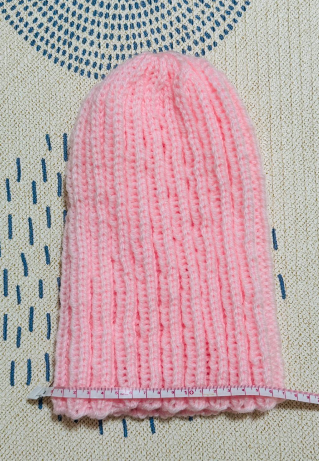 【手編み】シンプルなリブニット帽 コーラルピンク ハンドメイド 一点もの キッズ用 完全無料