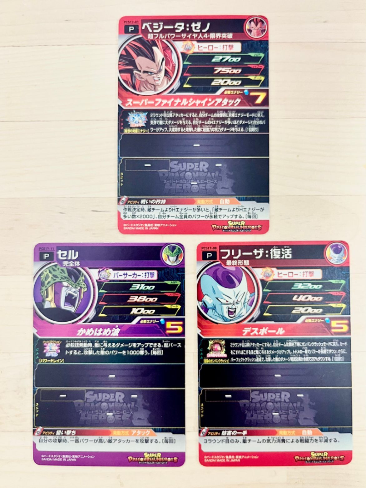【送料無料】■ドラゴンボール◆新品未使用◆カード◆ベジータ◆フリーザ◆セル