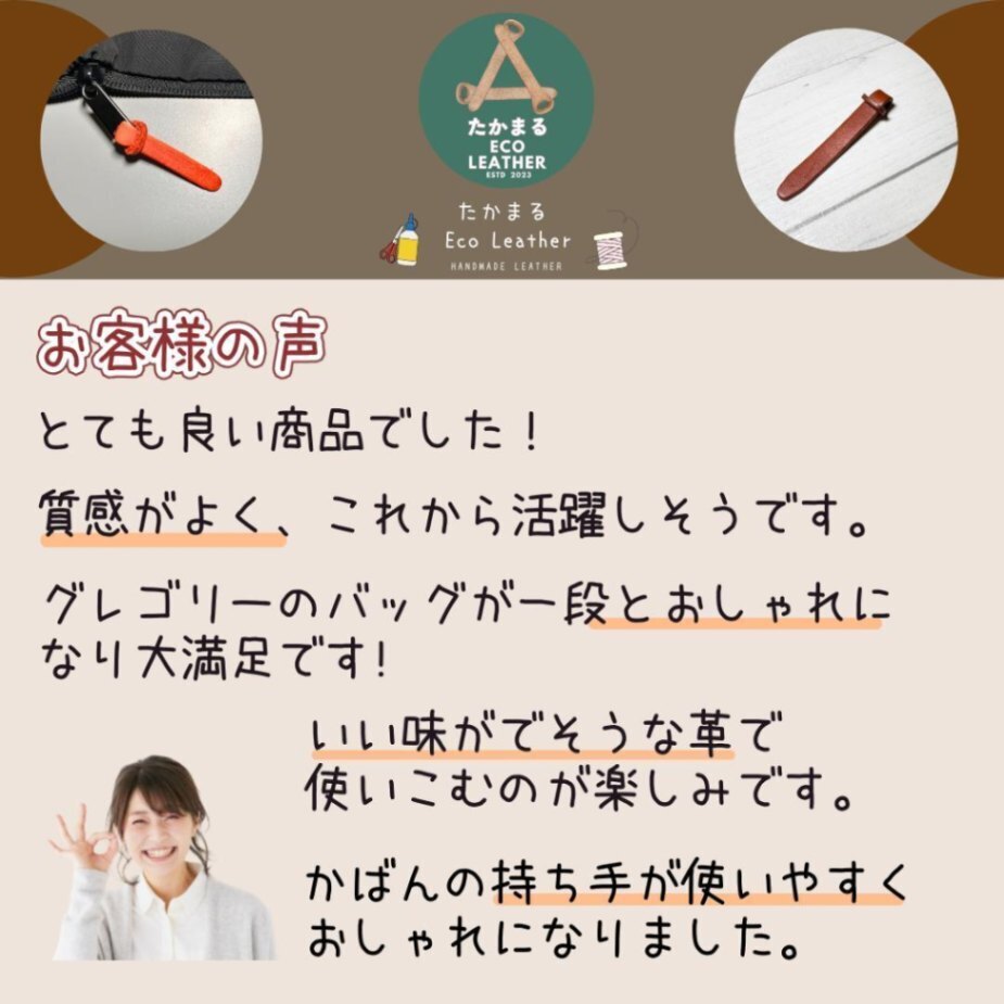 ・天然素材のタンニン鞣しを切り出し、手作業で仕上げたジッパータブです。