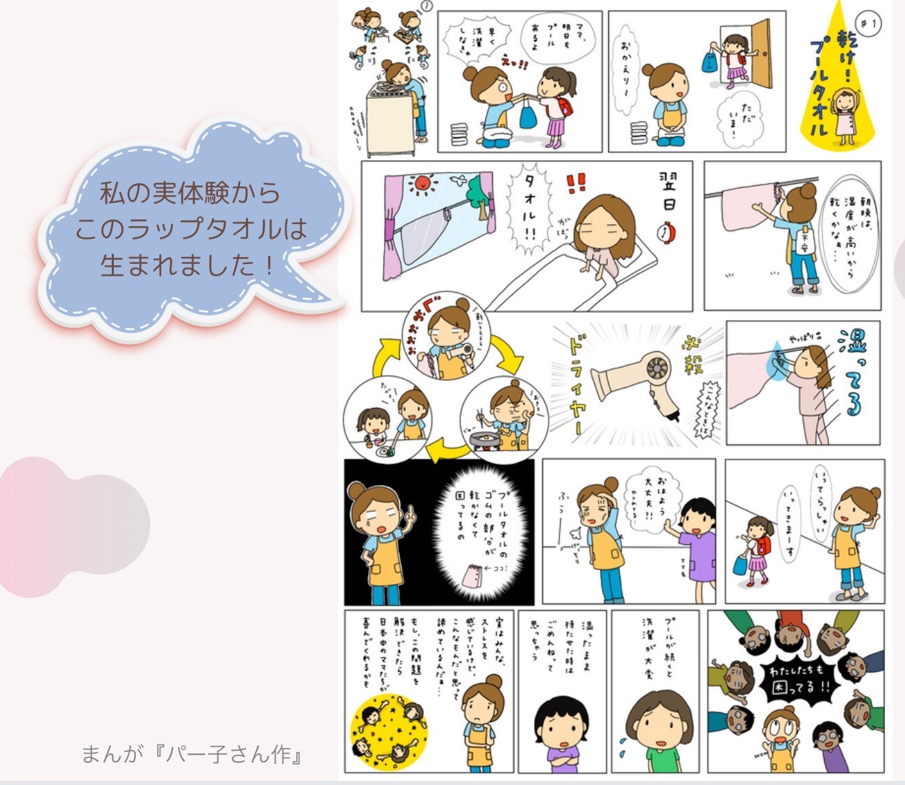 多くのママは、ラップタオルのゴム部分の乾きにくさにモヤモヤを感じたことがあるのではないでしょうか?