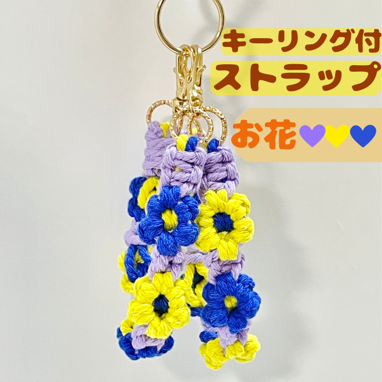 🌼キーリング付きお花編み2重ストラップ🔐🌼