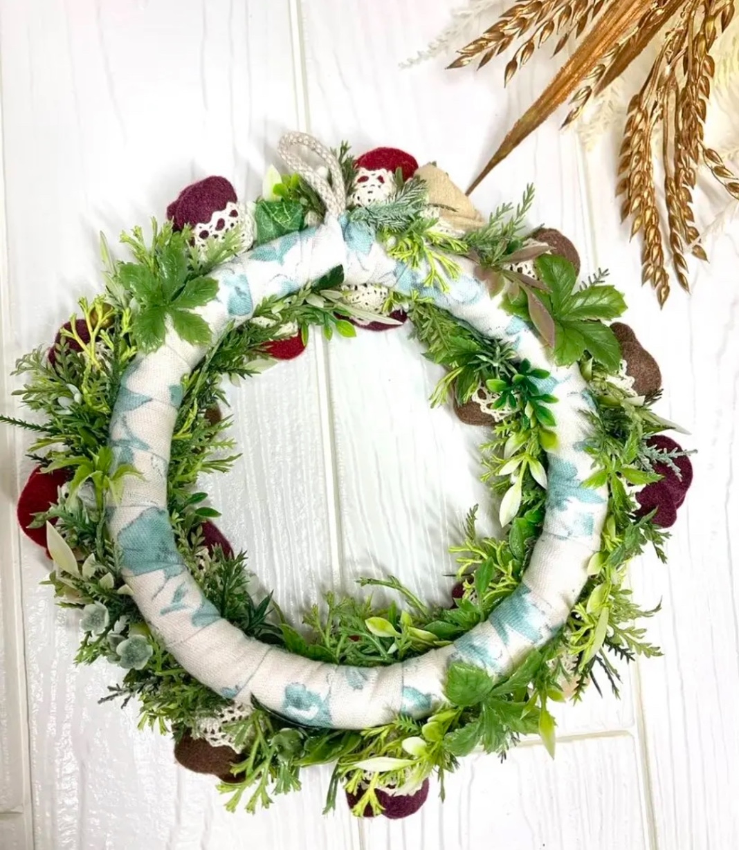 おうちのインテリアのアクセントになる、フェルトでお花を作ったリースです。