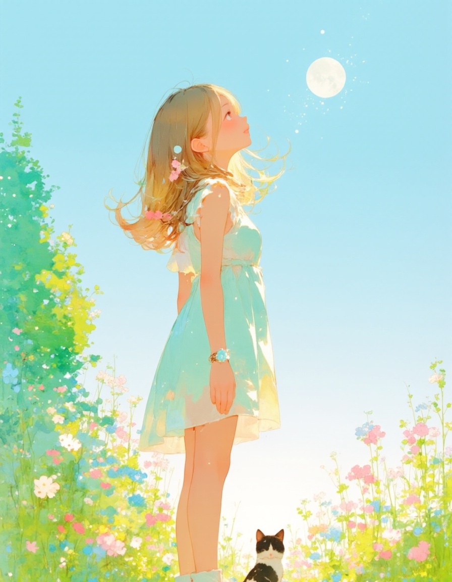 オリジナルAIイラスト水彩風女の子ポストカード5P ⑥ ※プレゼントポストカード入り♪