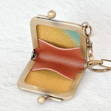 仕事柄、指輪やピアスを外さなければいけないときの一時的な収納や、お散歩・お買い物の際の『いざ』というときに便利な本革ミニがま口キーホルダーです。