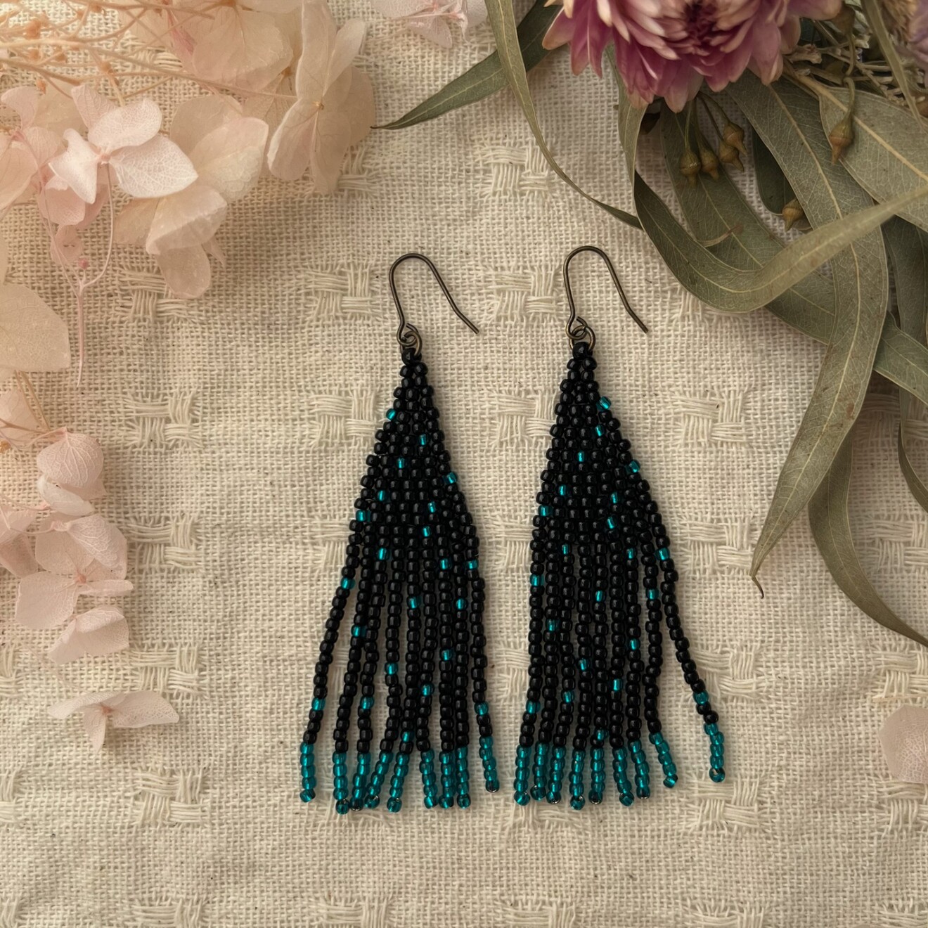 ハンドメイド ビーズ クィーンビーズ グラスビーズ シードビーズ デリカ デリカビーズ ビーズステッチ フリンジ タッセル ピアス イヤリング ステンレス SUS 樹脂 ネイティブ エスニック ボヘミアン 軽い おしゃれ オシャレ 大人 シンプル カジュアル 大ぶり おおぶり
