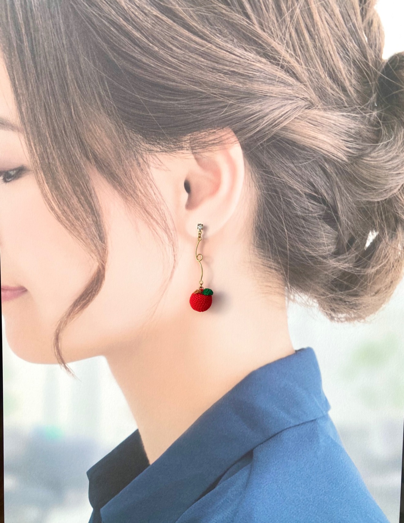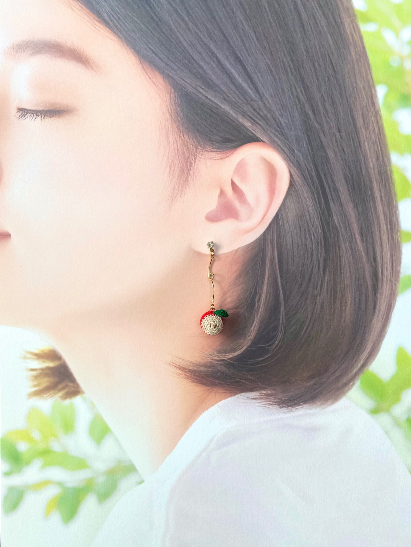 小さな手編みのりんごピアス