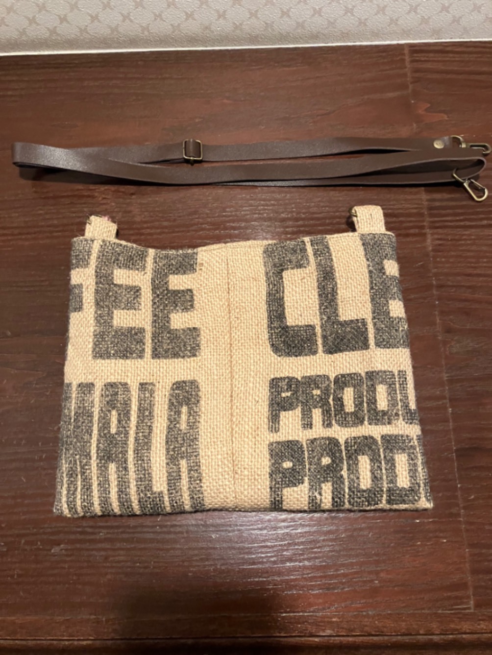 ファーマーズマーケットで販売している「グアテマラJAS Organic」の麻袋のショルダーバッグです。https://farmers.libecity.com/products/4572