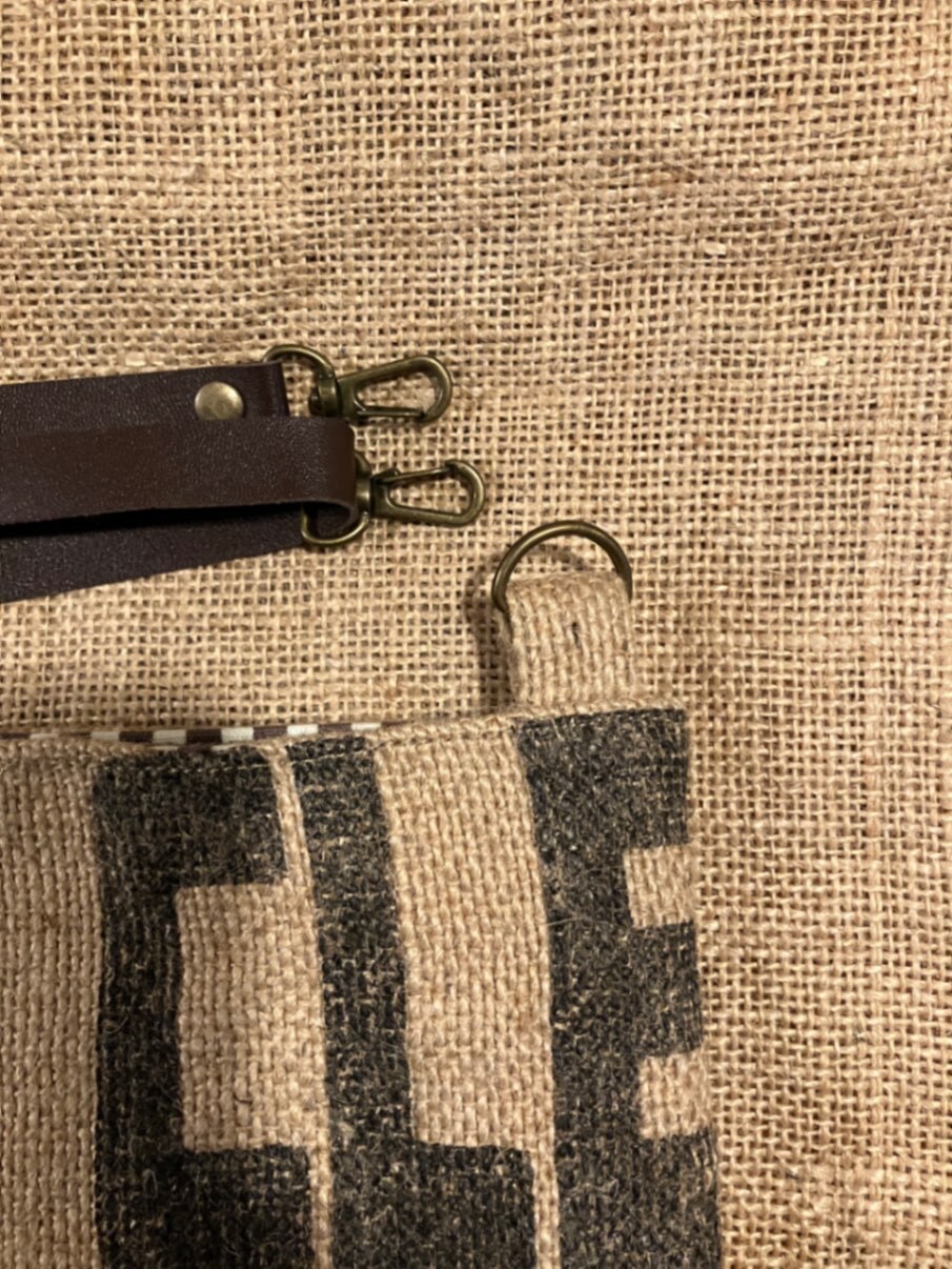 その麻袋をリメイクしてショルダーバッグを作成しました。