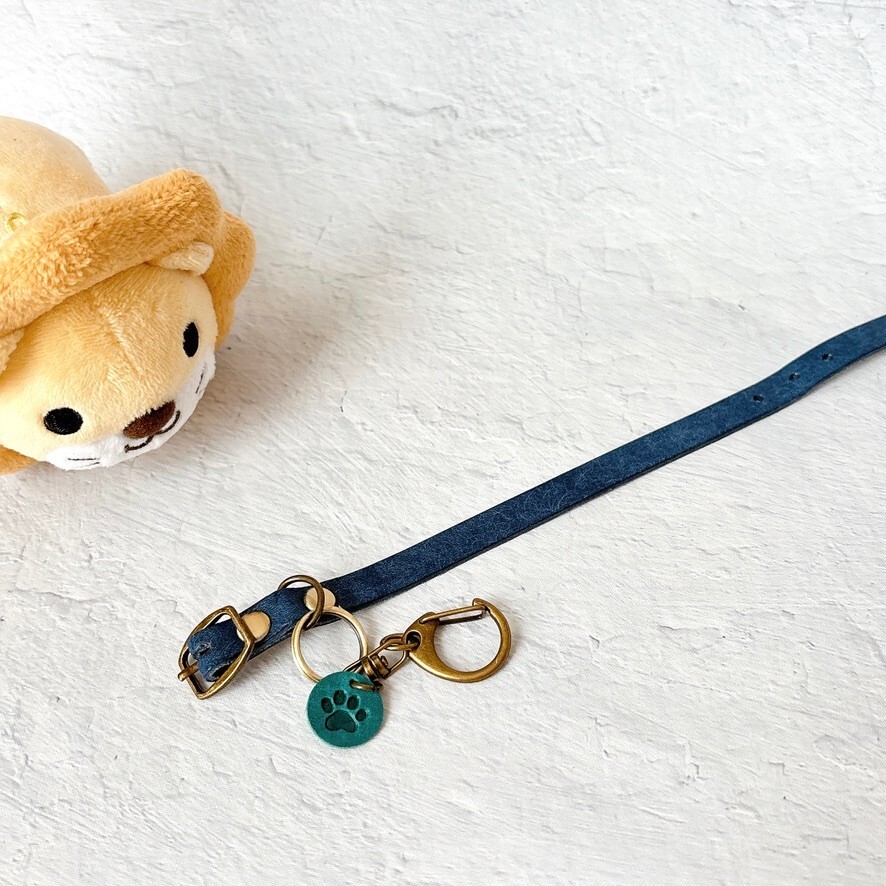 【推しぬいを守る】本革首輪キーホルダー(イタリアンレザー)コバルトブルー