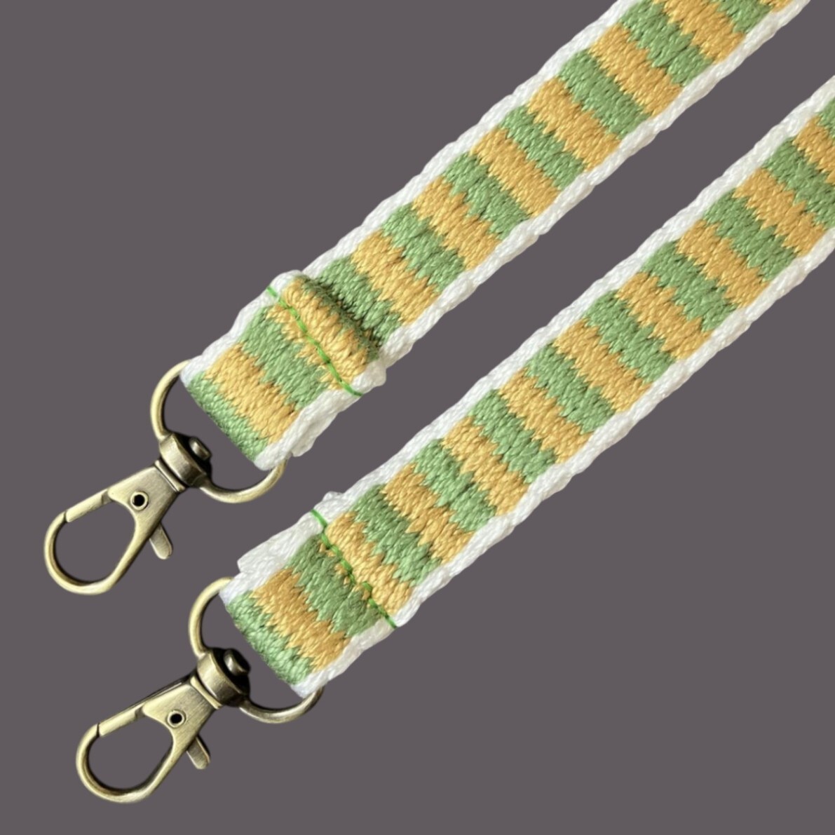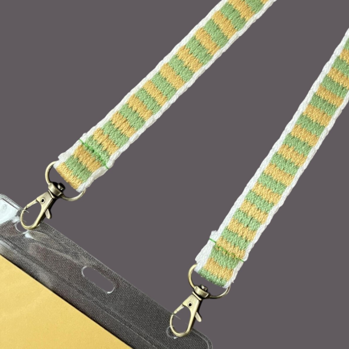 オフィス訪問やオフ会参加に役立つ、名札にさりげない個性を添えられるハンドメイドのネックストラップです。