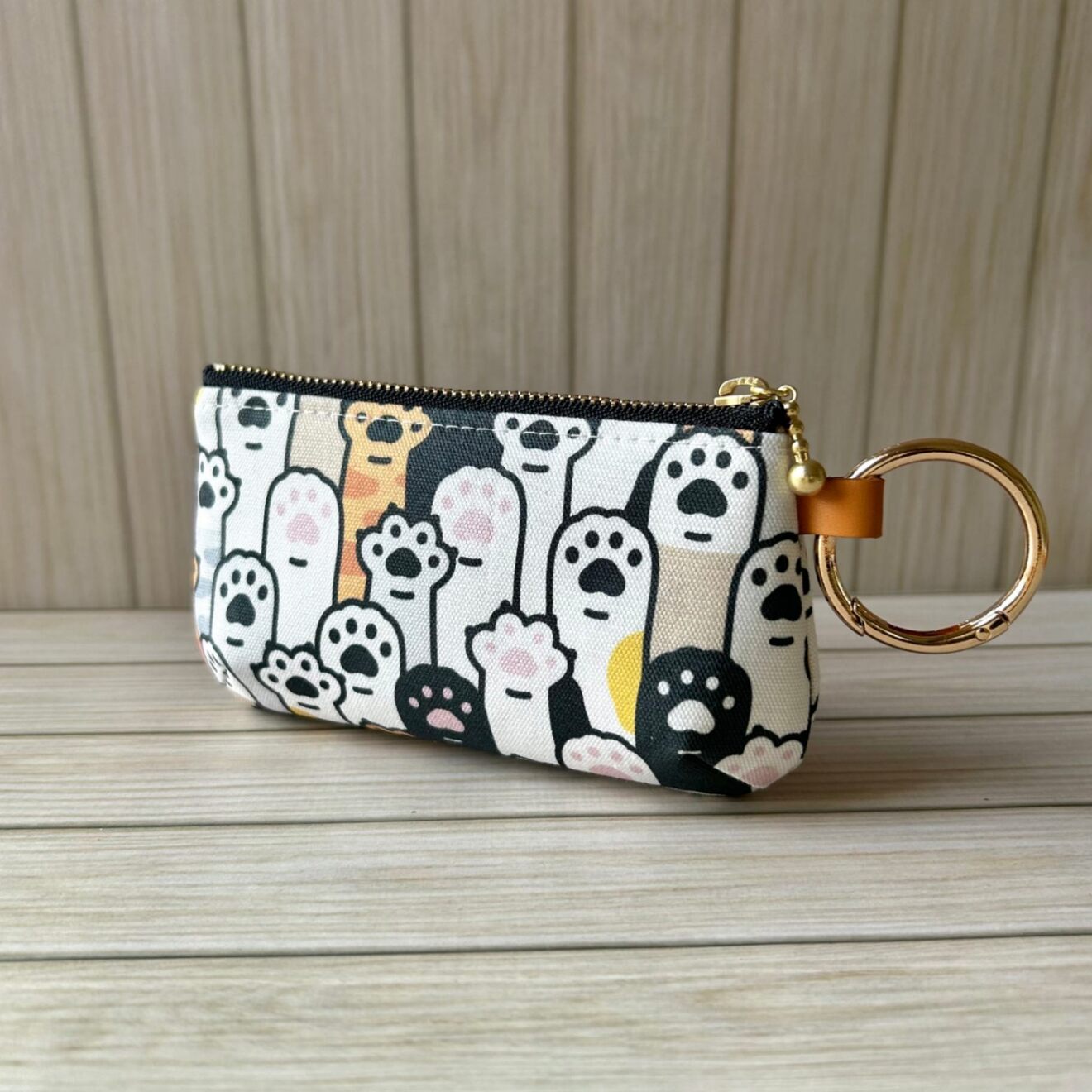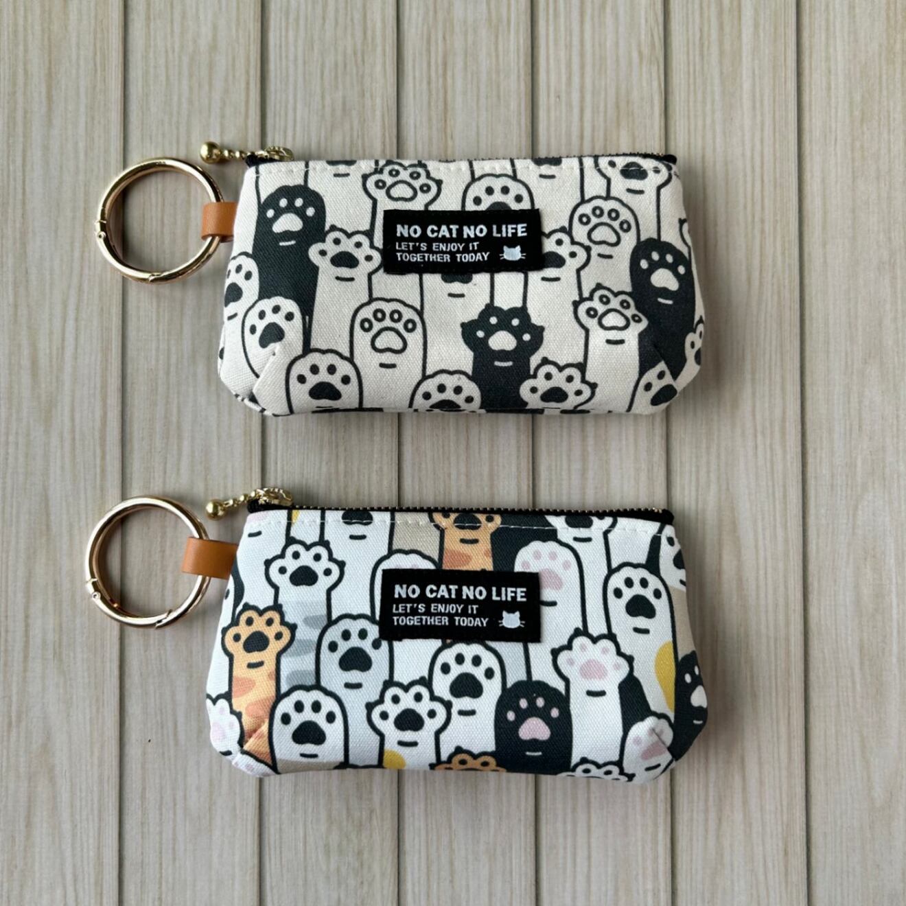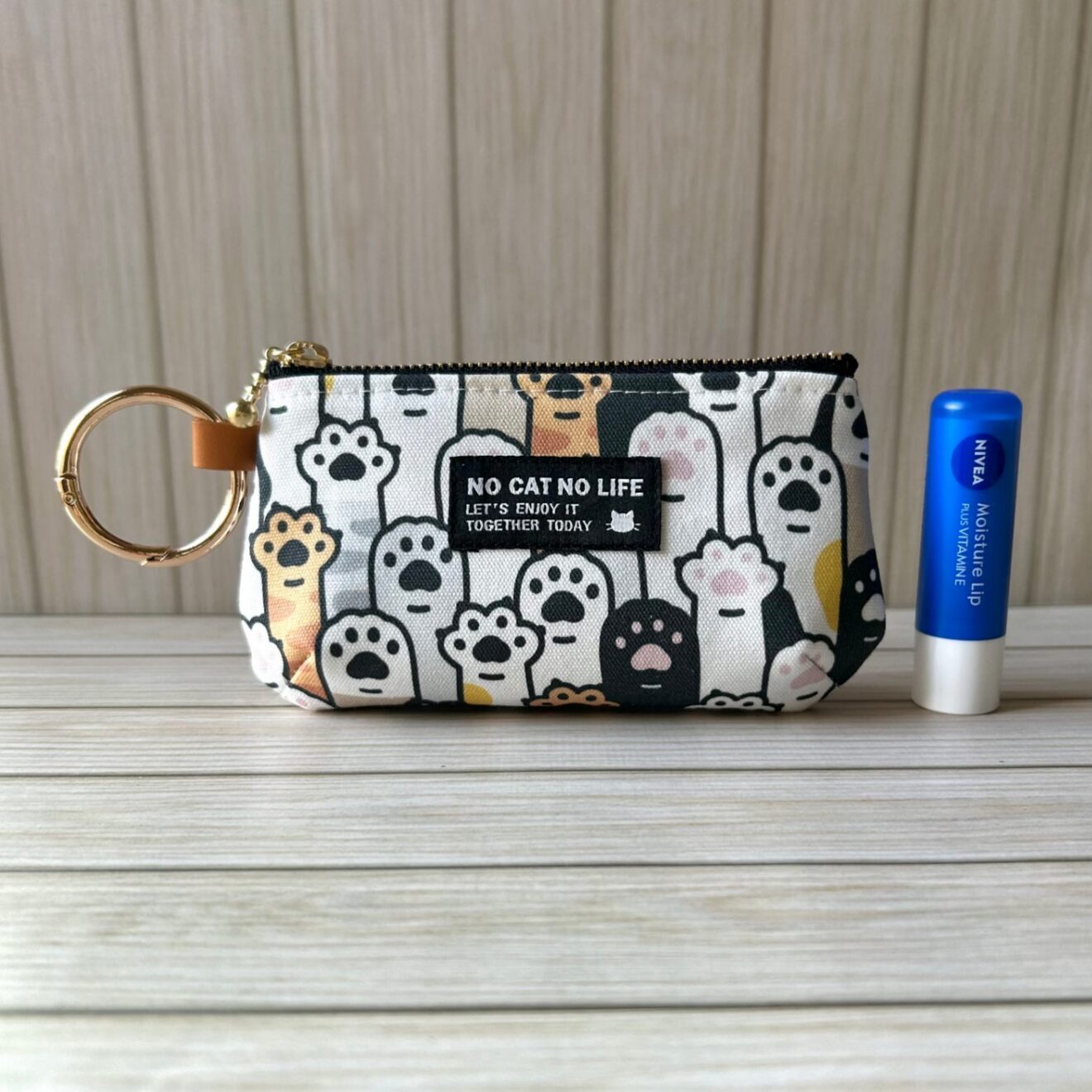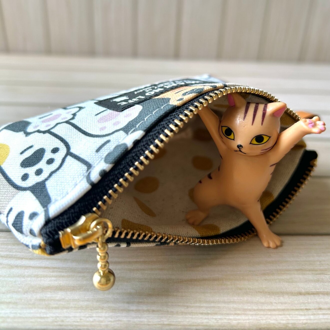カラフルな猫の手がずらりと並んだ、ポップで元気なデザインのファスナーポーチです🐾ころんと小さめサイズで、リップやイヤホン、鍵などの小物を可愛く収納✨