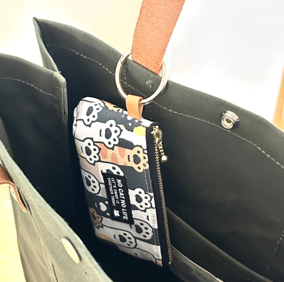 便利なカラビナリング付きで、バッグの持ち手にも簡単に取り付けられます◎