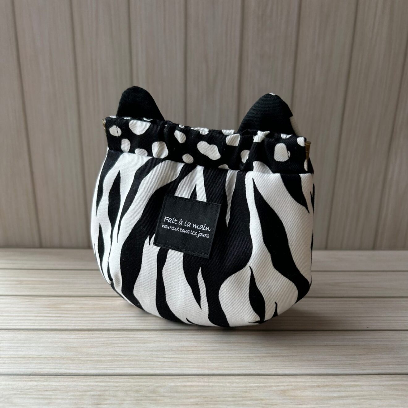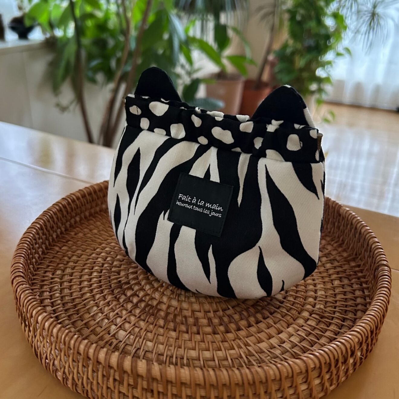 【お値下げしました】猫のようで猫じゃない!?|ゼブラ柄|猫のバネポーチ