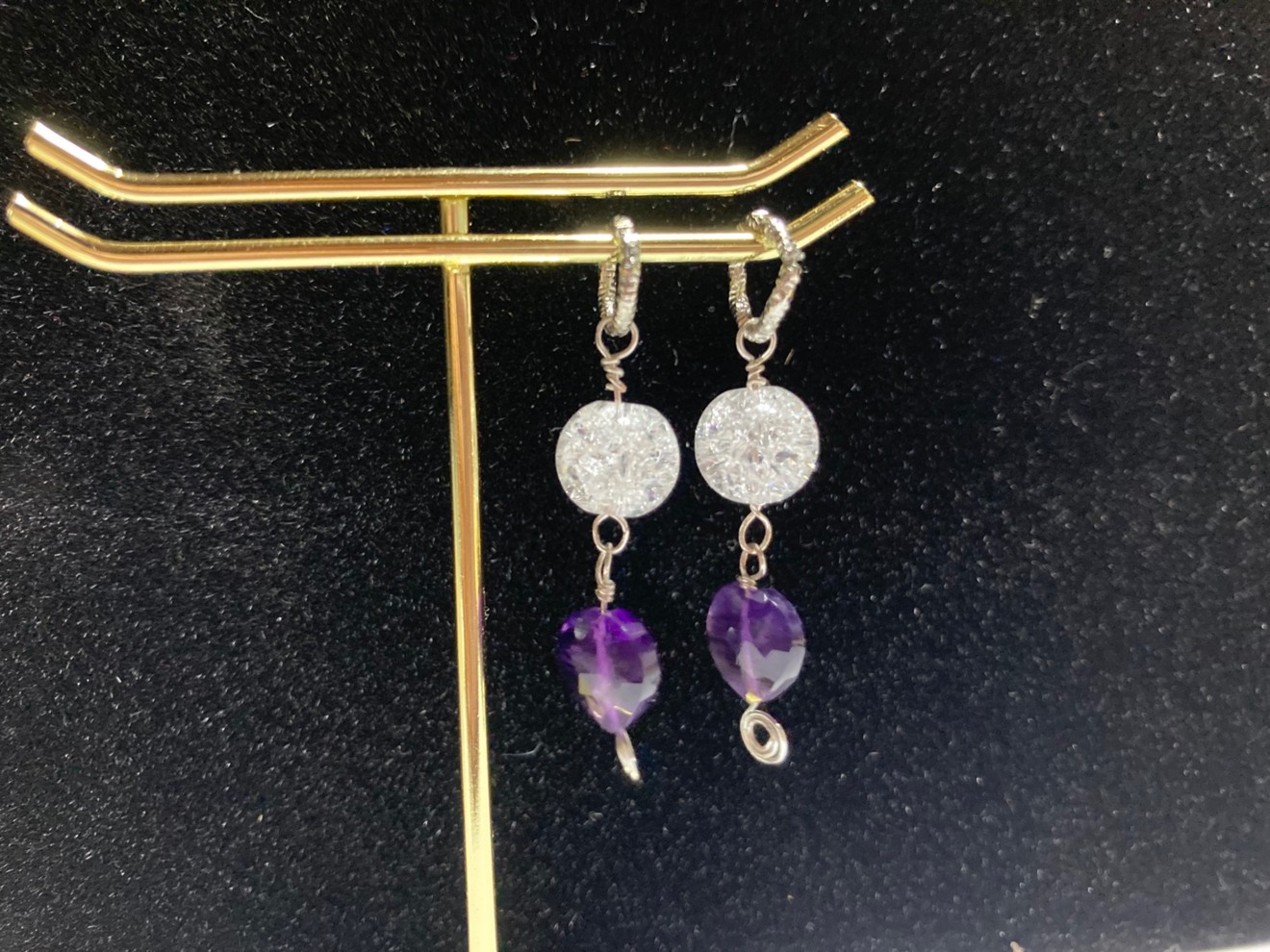 【ハンドメイド】天然石 チャーム 水晶 アメジスト