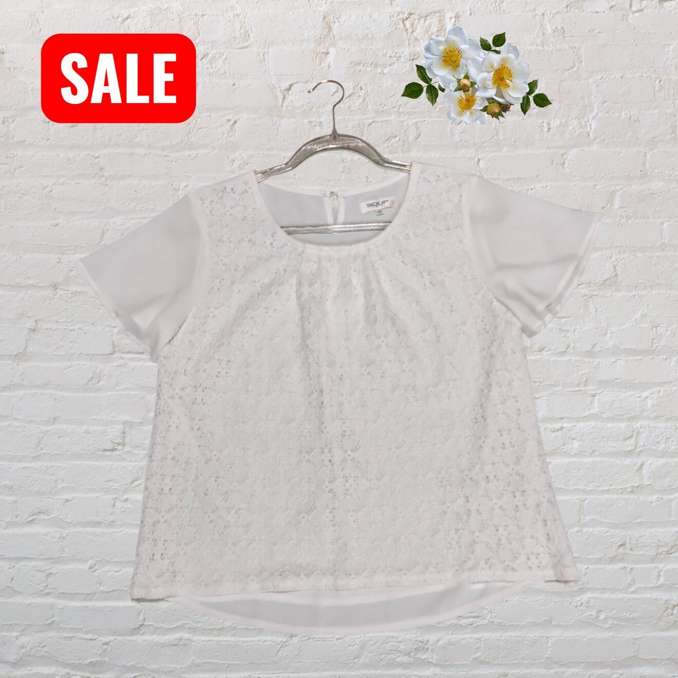 【美品】ブラウス 白 ホワイト 半袖 レース カットソー レディース ガールズ キッズ