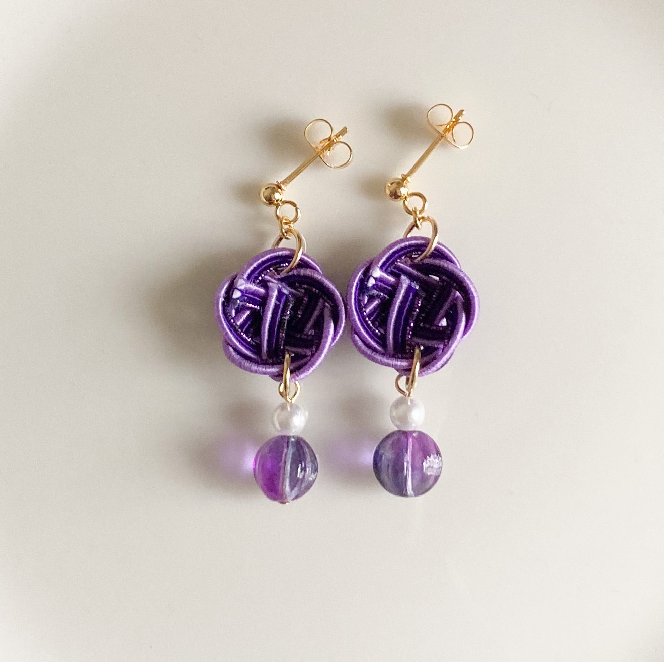 水引で「梅結び」という結びを立体的に、ふっくら仕上げたピアス/イヤリングになります。