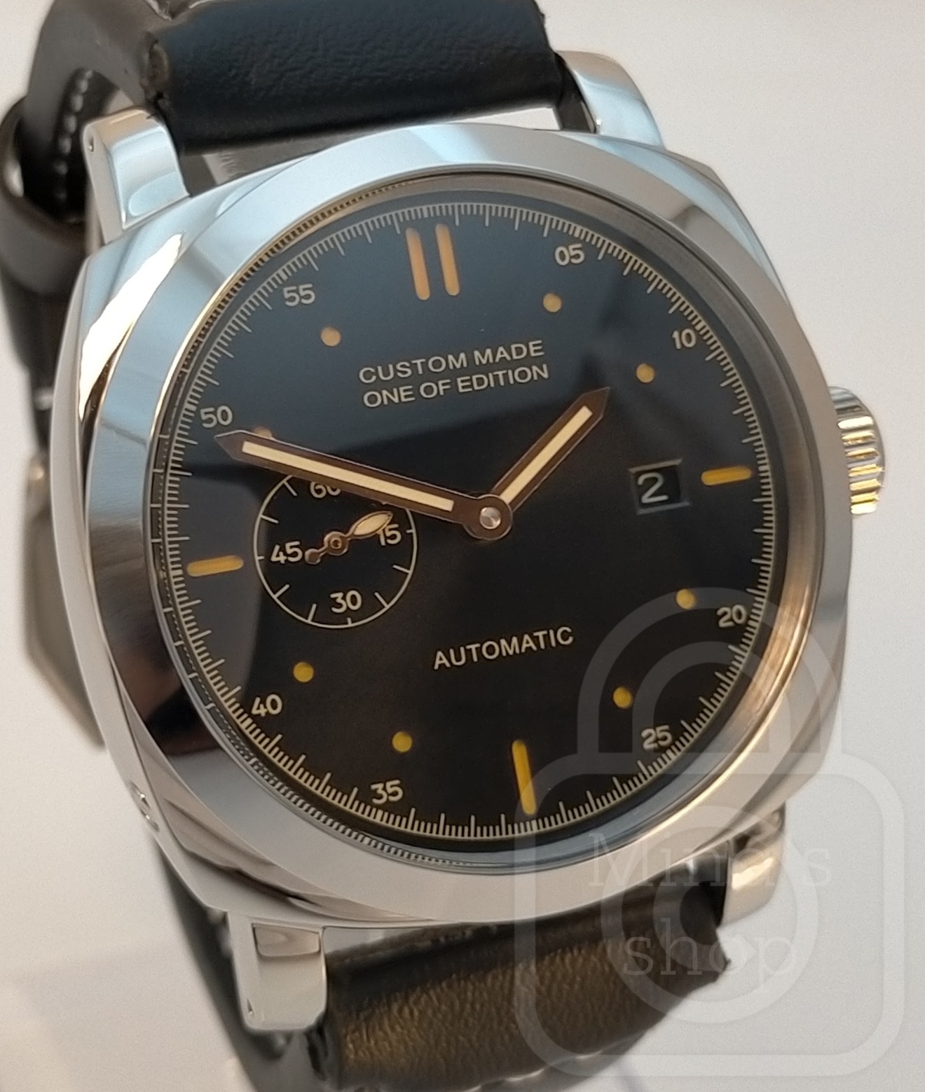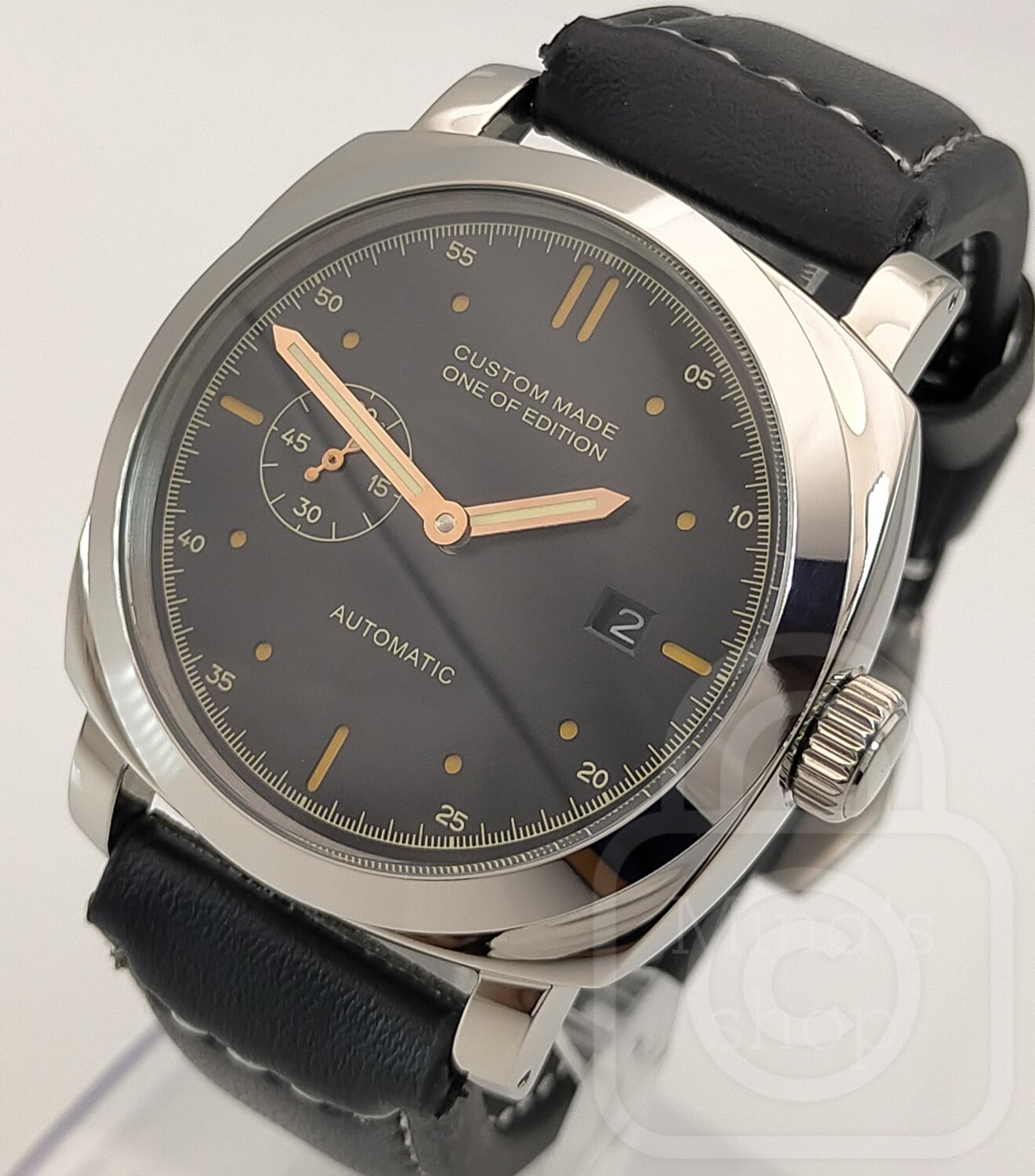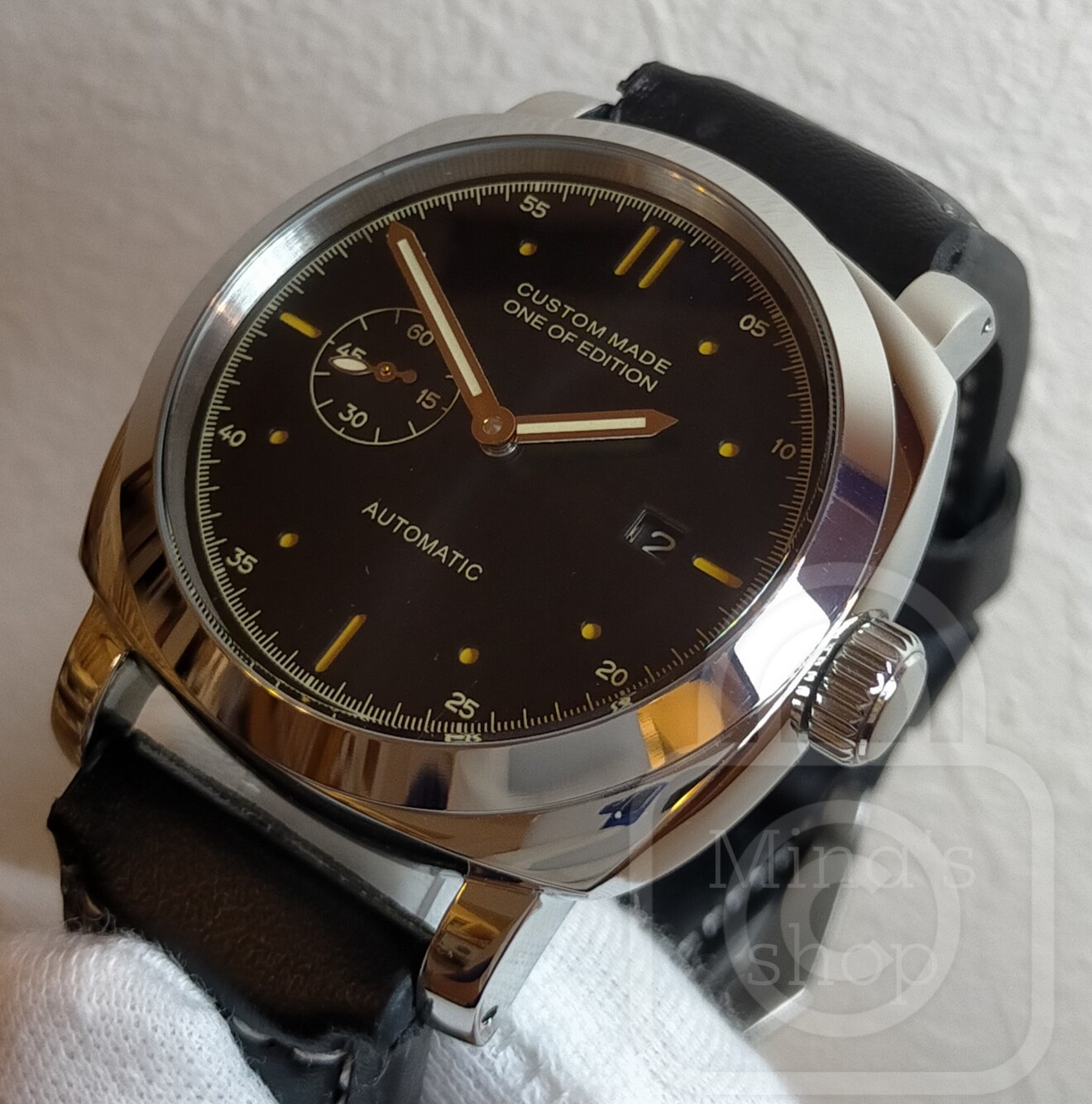 こちらの様な大口径モデルは実はデザインスタディにおいてごまかしは効かず、例えば風防のアール具合や文字盤の質感やスモセコや日付ウインドウの文字盤全体におけるバランスなどデザイン力の真価が問われます。