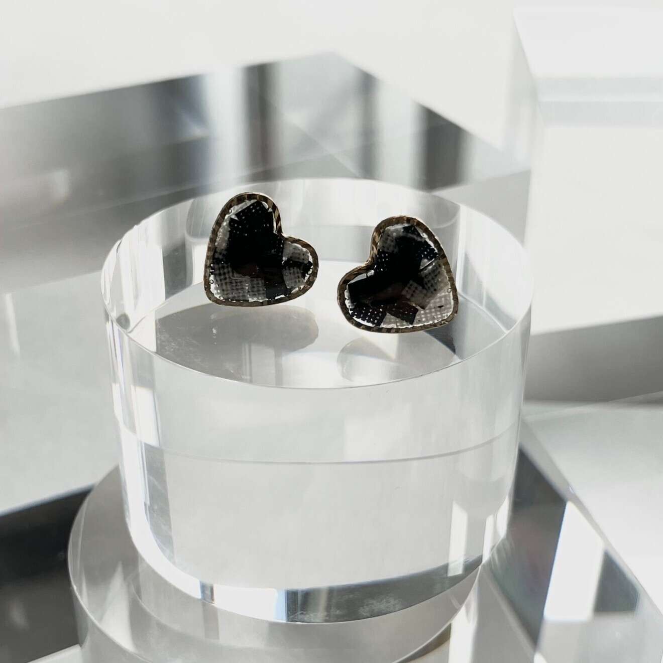 【パンダカラーピアス🐼】アフリカ布を使用 カッコ可愛い ブラック×ホワイト 揺れない小粒ハート