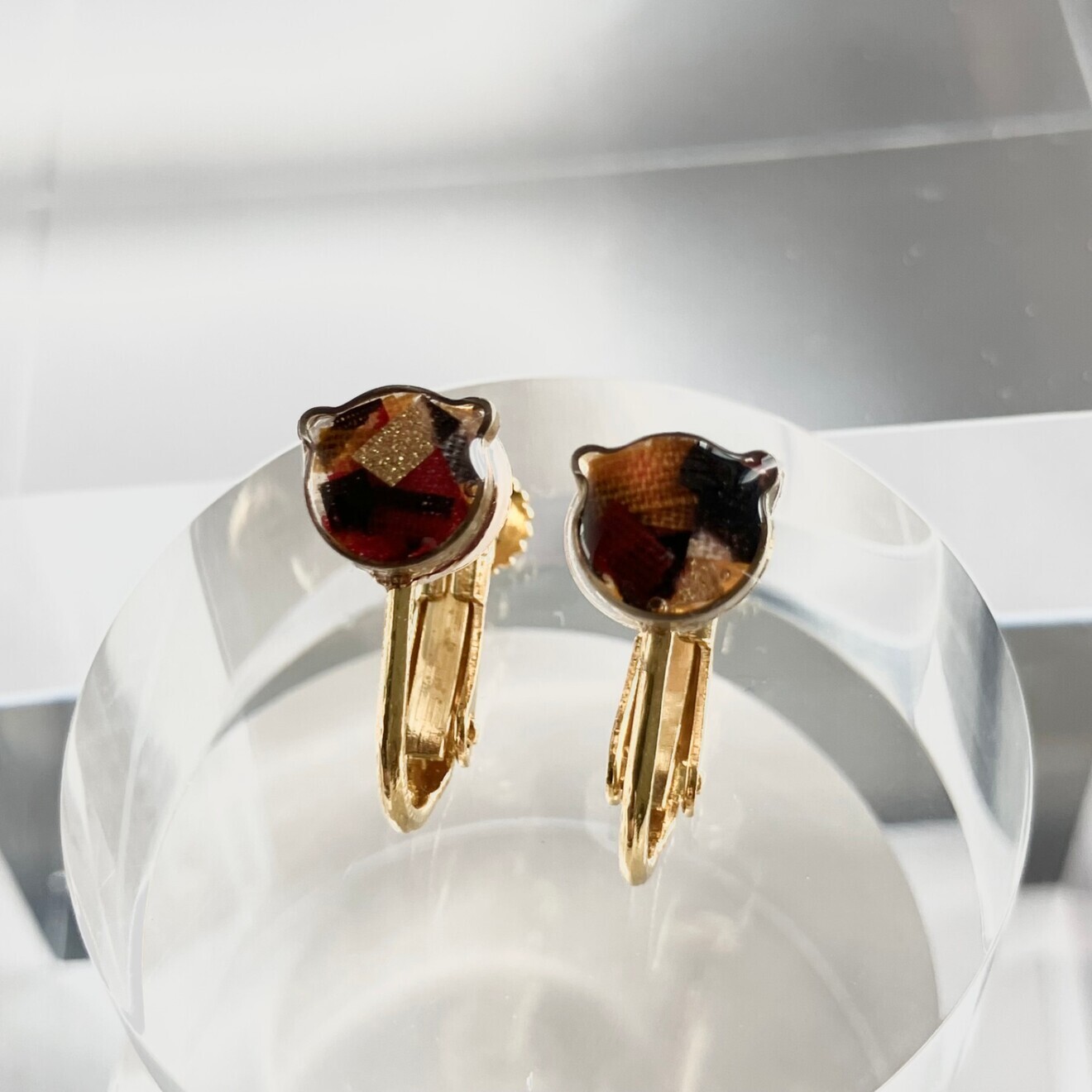 ・レッドとゴールドのアフリカ布のハギレを使用したさりげない猫は小粒でさりげなくつけられる、大人から子どもまで楽しめるデザイン。