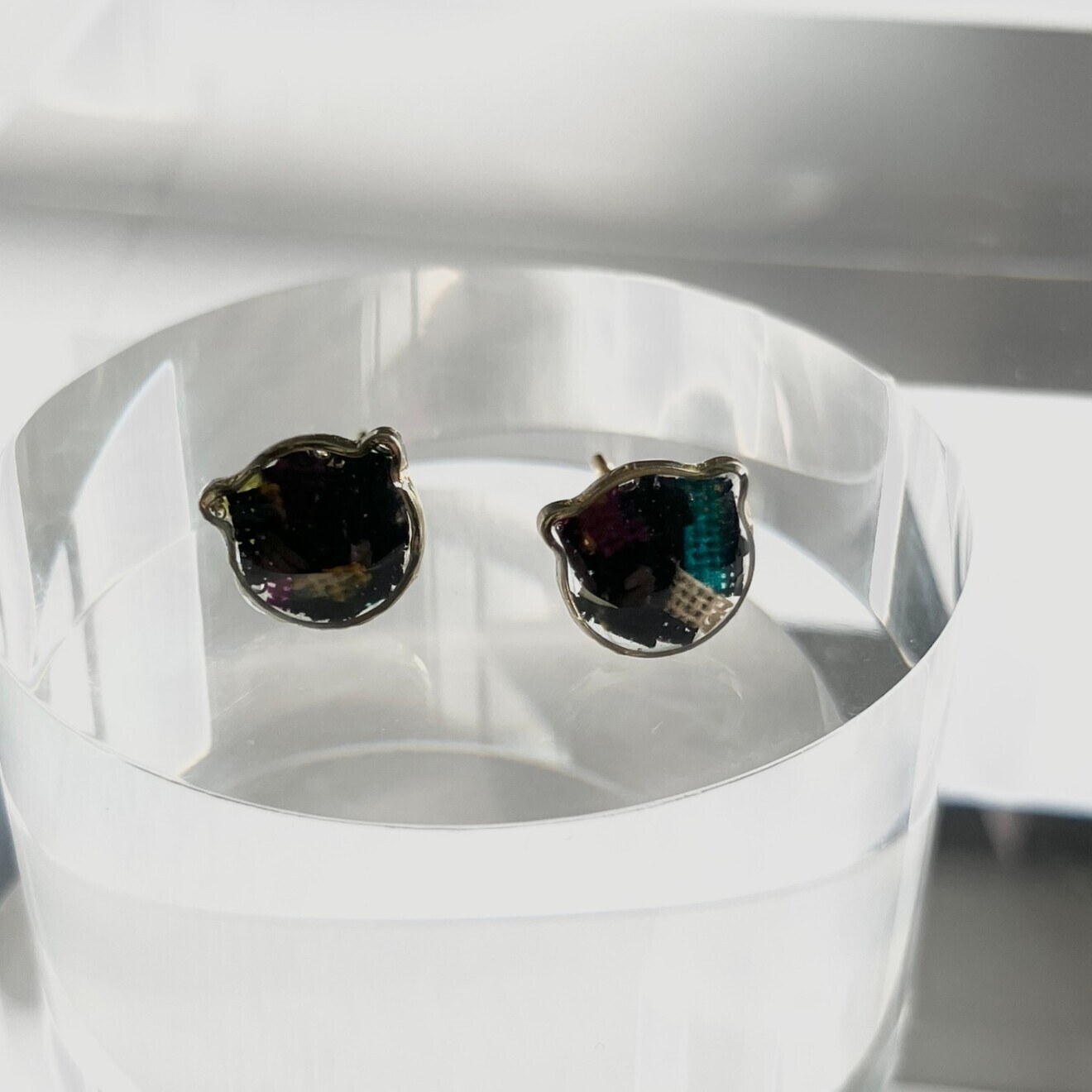 【イケメンな猫ピアス🐈】大人がつけられるさりげない猫 金属アレルギー対応 光の角度で色が変化💡