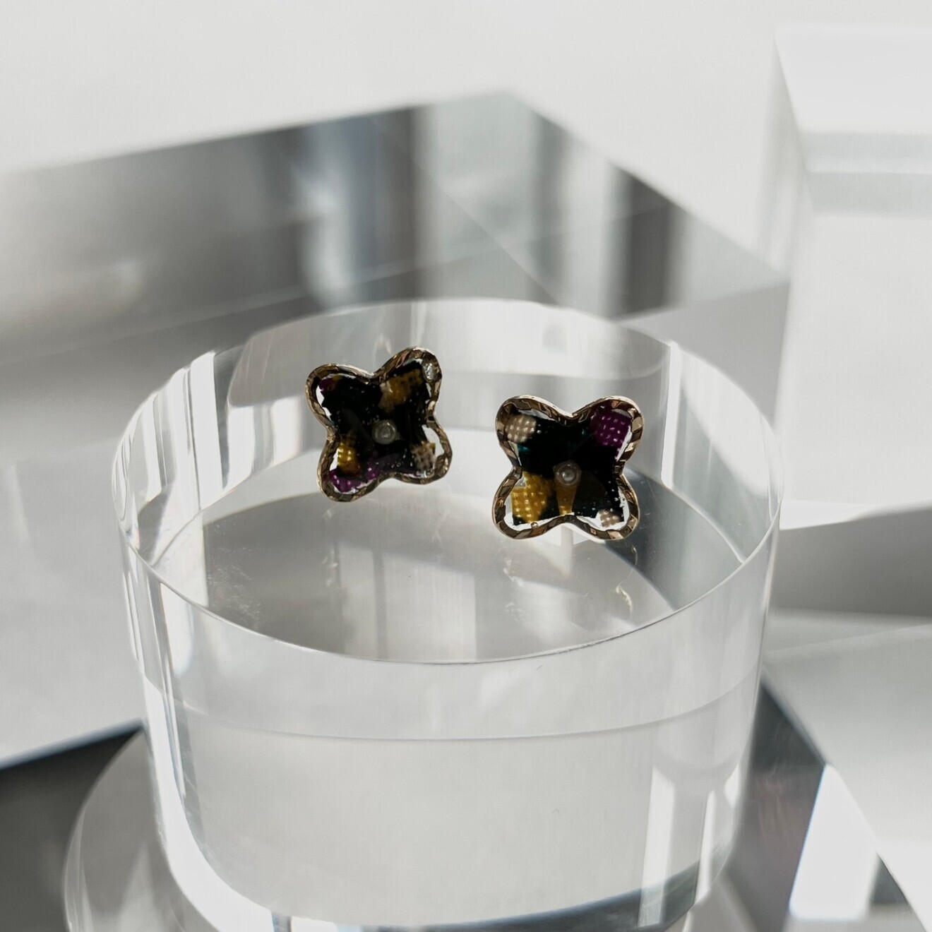 ・1センチのダークカラーで大人の女性らしさを感じる小花のピアス