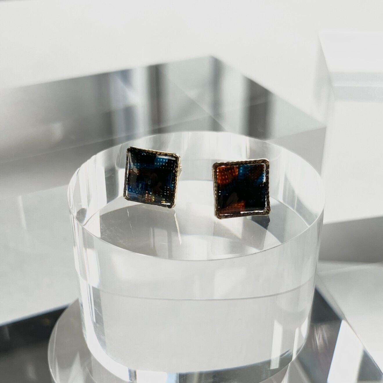 【8ミリの四角】ピアス(暗闇の中で小さな光を放つダークブルーカラー🫐)