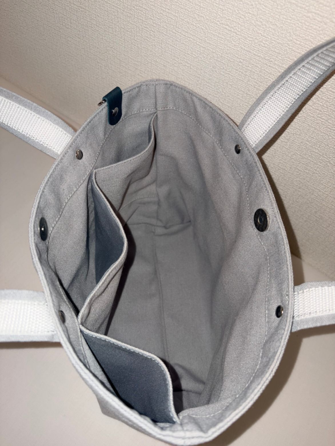 シンプルで上品なライトグレーカラーのトートバッグです。季節を問わずお使いいただけます。