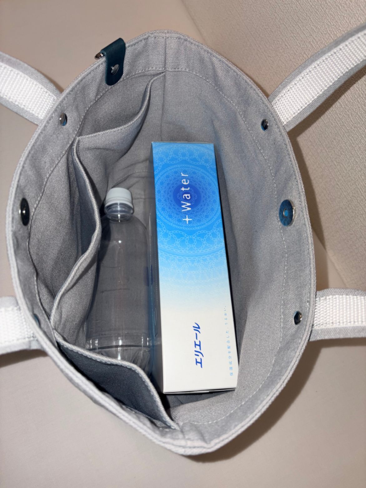 [帆布] 500mlのペットボトルが横向きに入る・ポケットいっぱい・ライトグレー色
