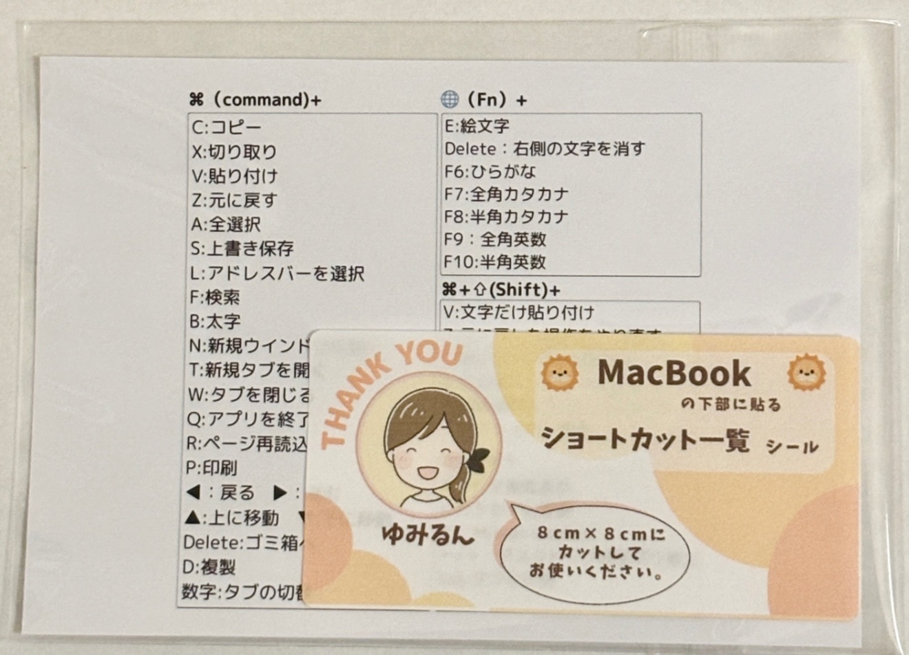MacBook用 ショートカット一覧シール(L版、8センチにカットしてご使用ください)