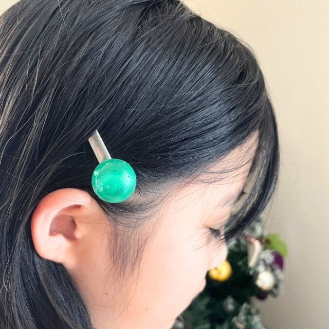 [ハンドメイド]緑のレジンヘアピン