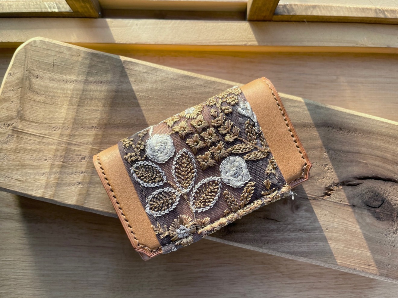 【ハンドメイド】インド刺繍リボンの本革カードケース