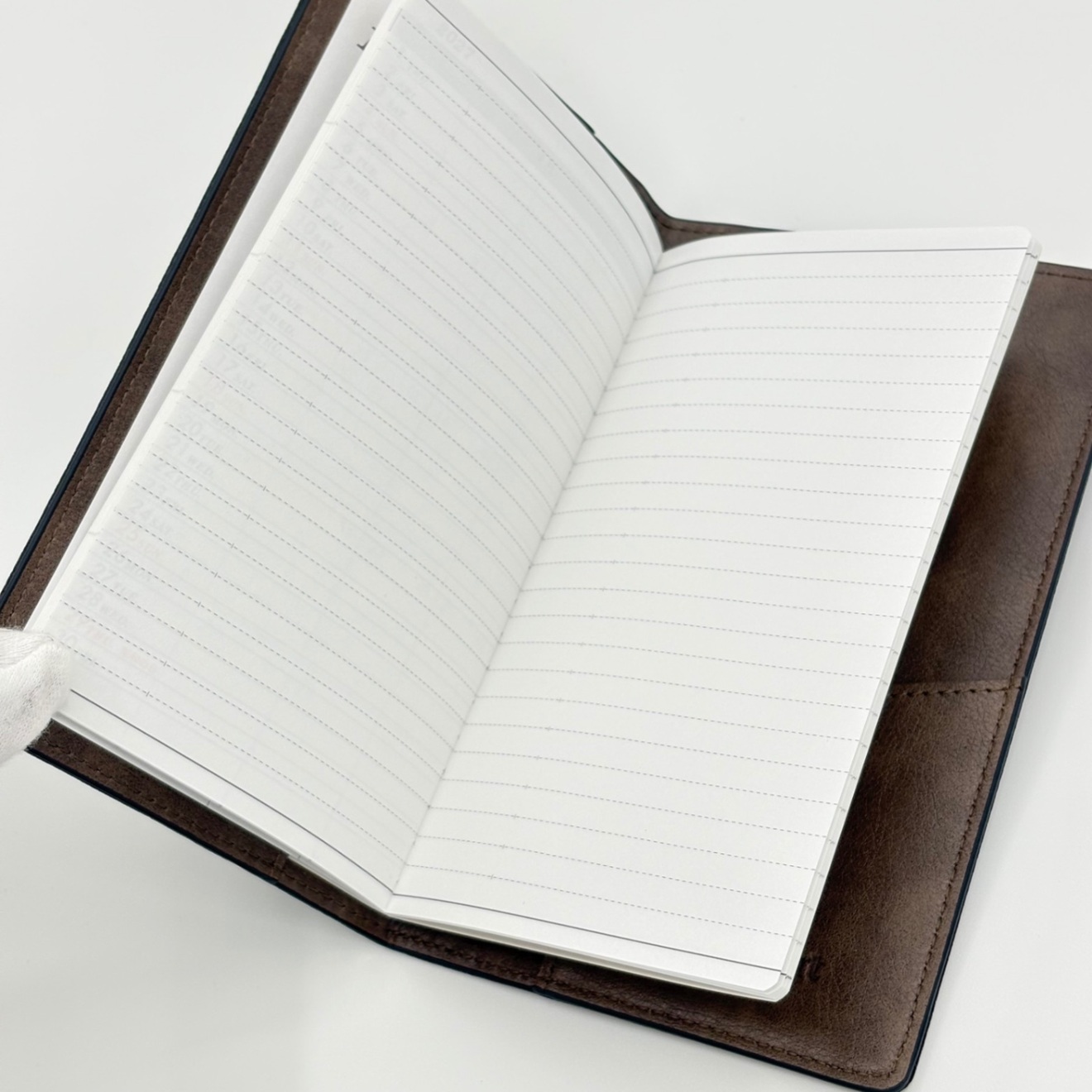 カバー色は外側がシボ感のある黒色、内側が風合いのある少し明るめの茶色です。