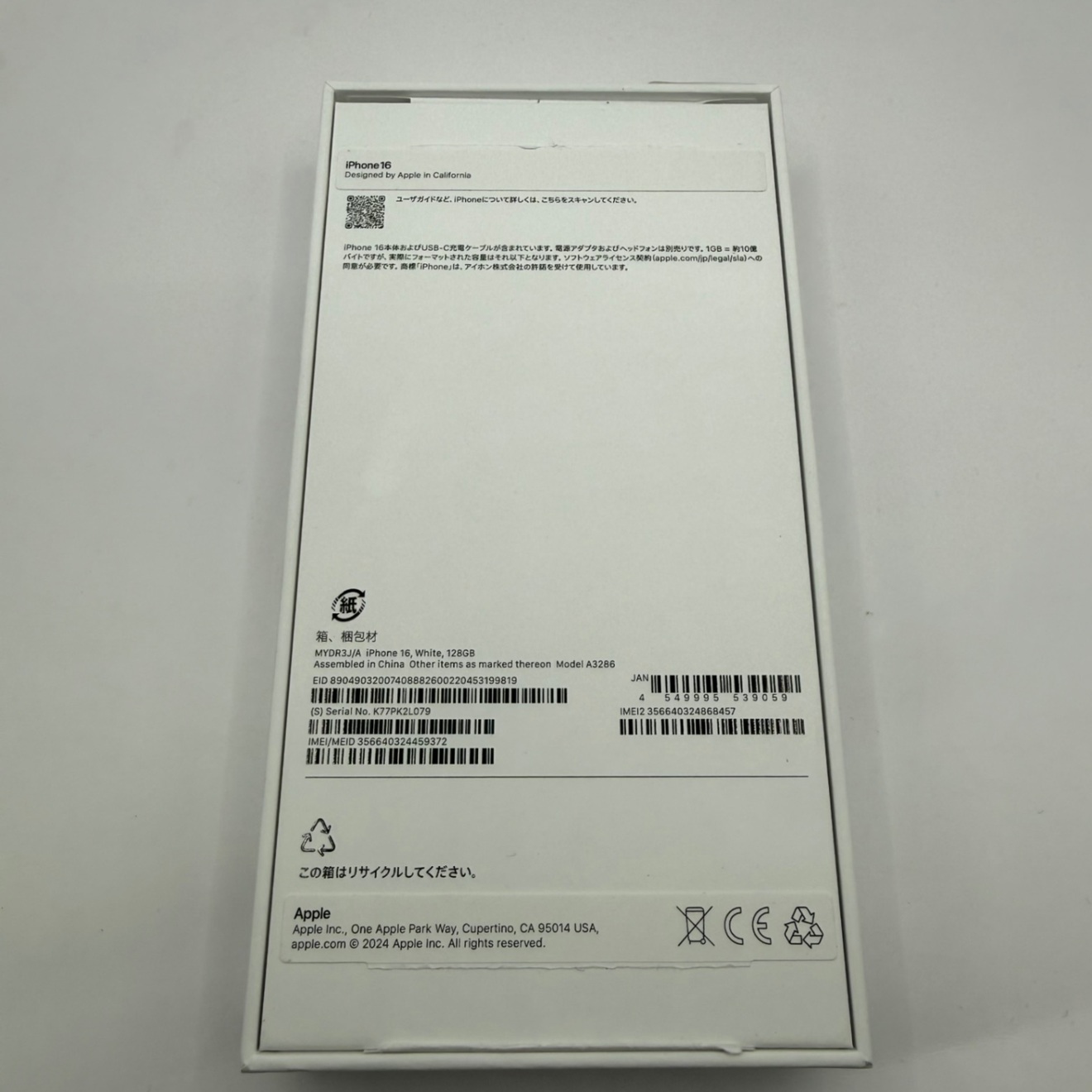 【新品】iPhone 16 128GB ホワイト SIMフリー