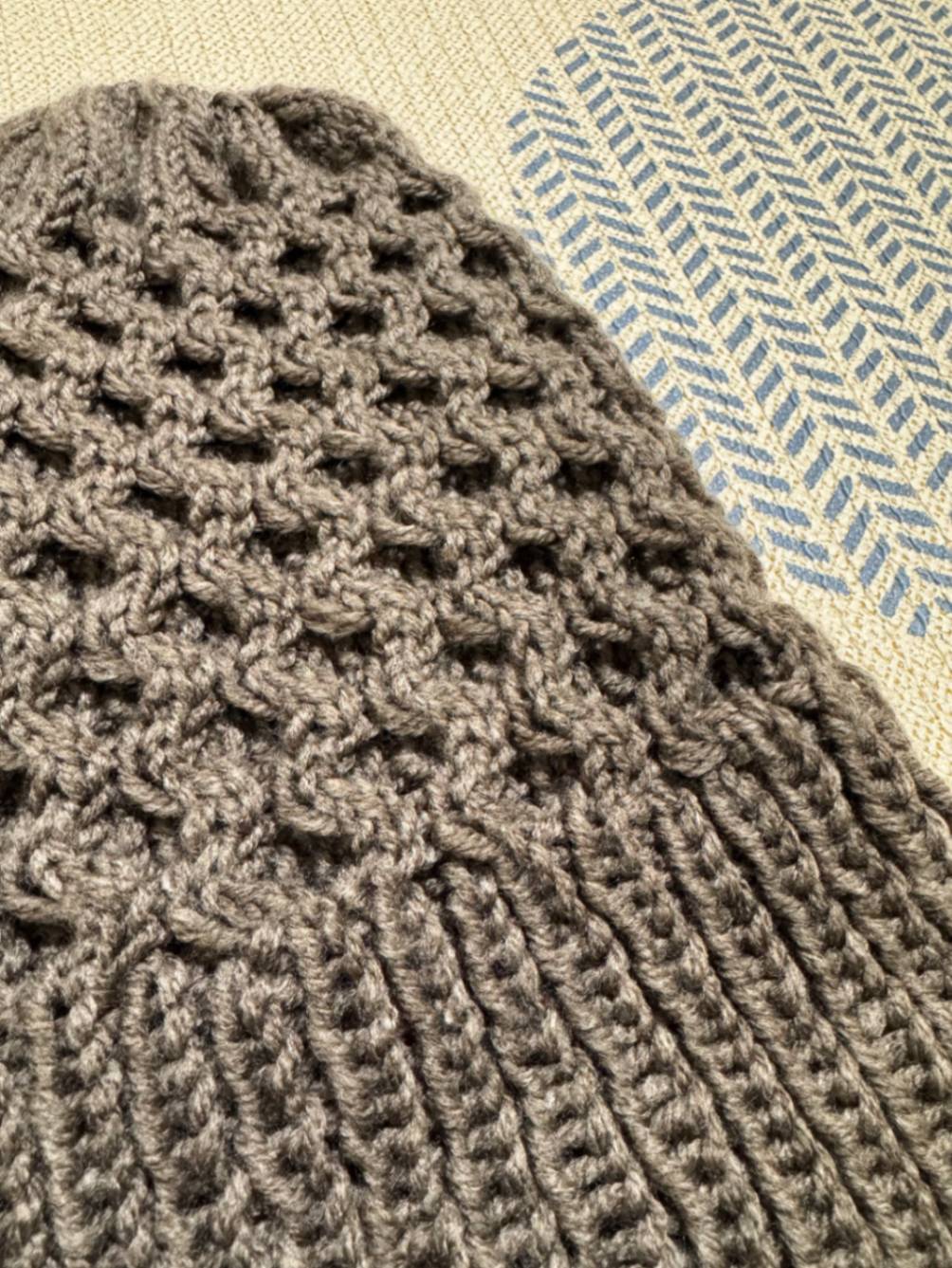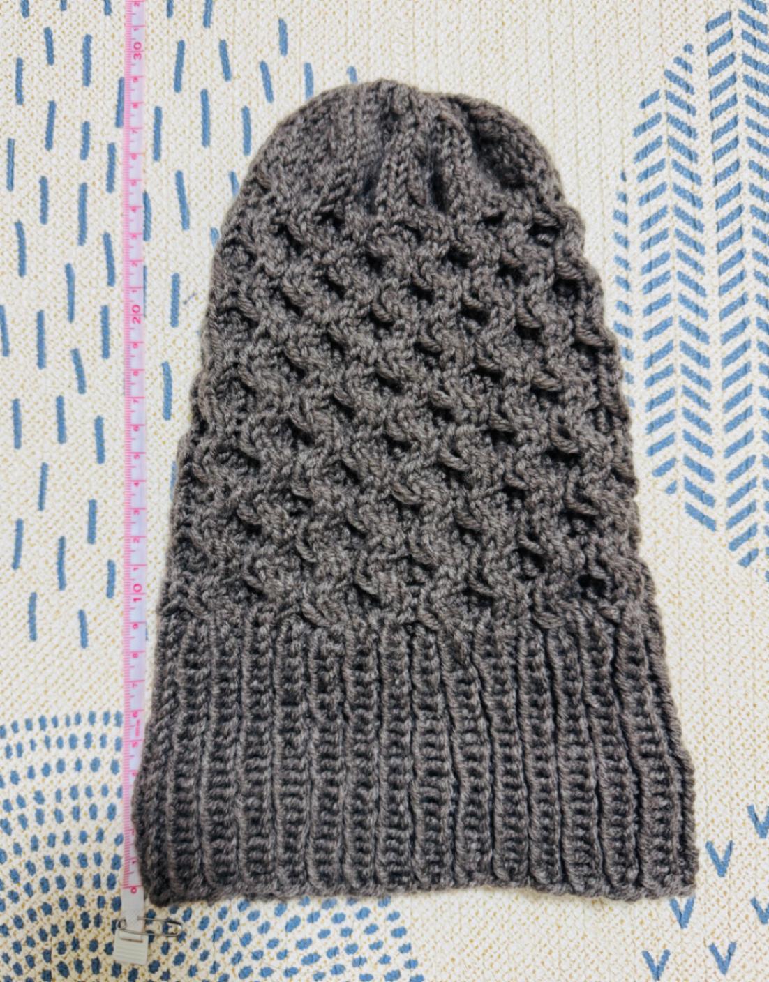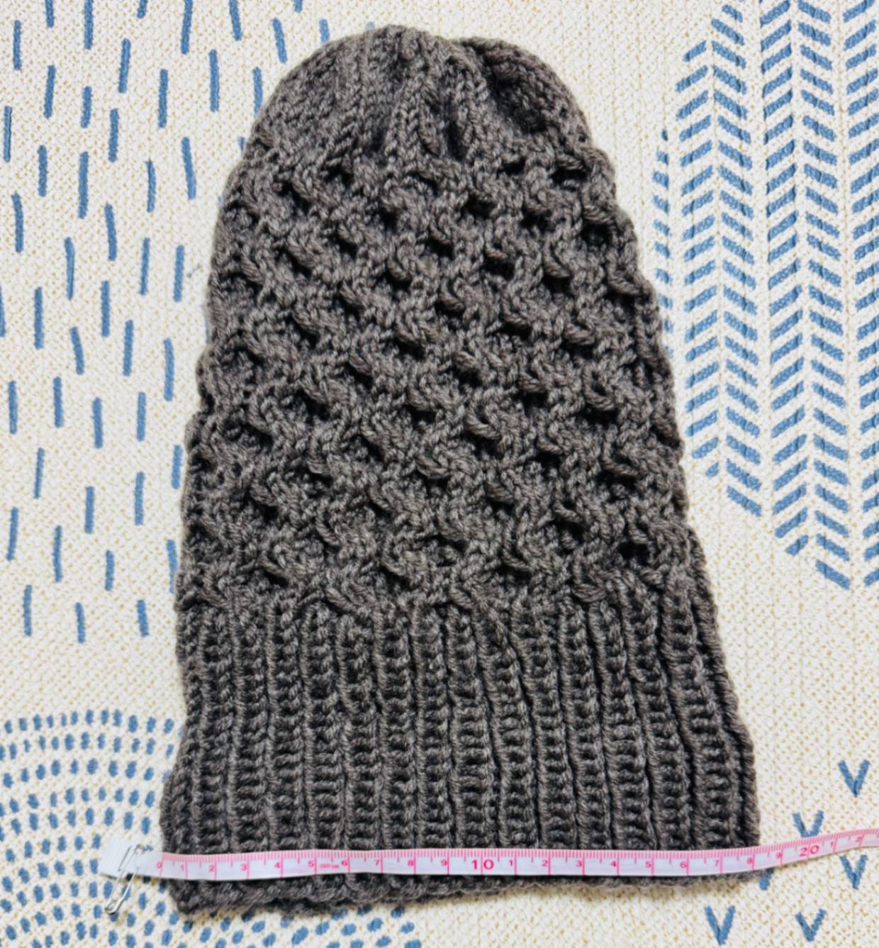 模様編みの部分はやや硬めの仕上がりであまり伸びないため、頭が小さめのお子様におすすめです。