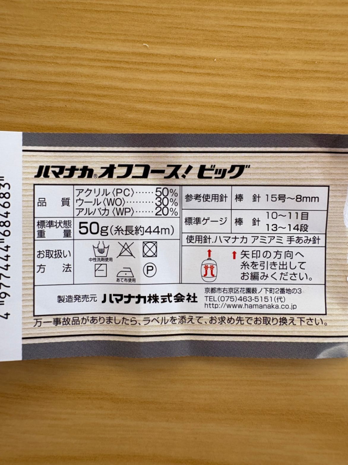 (ハマナカ「オフコース!ビッグ」使用)