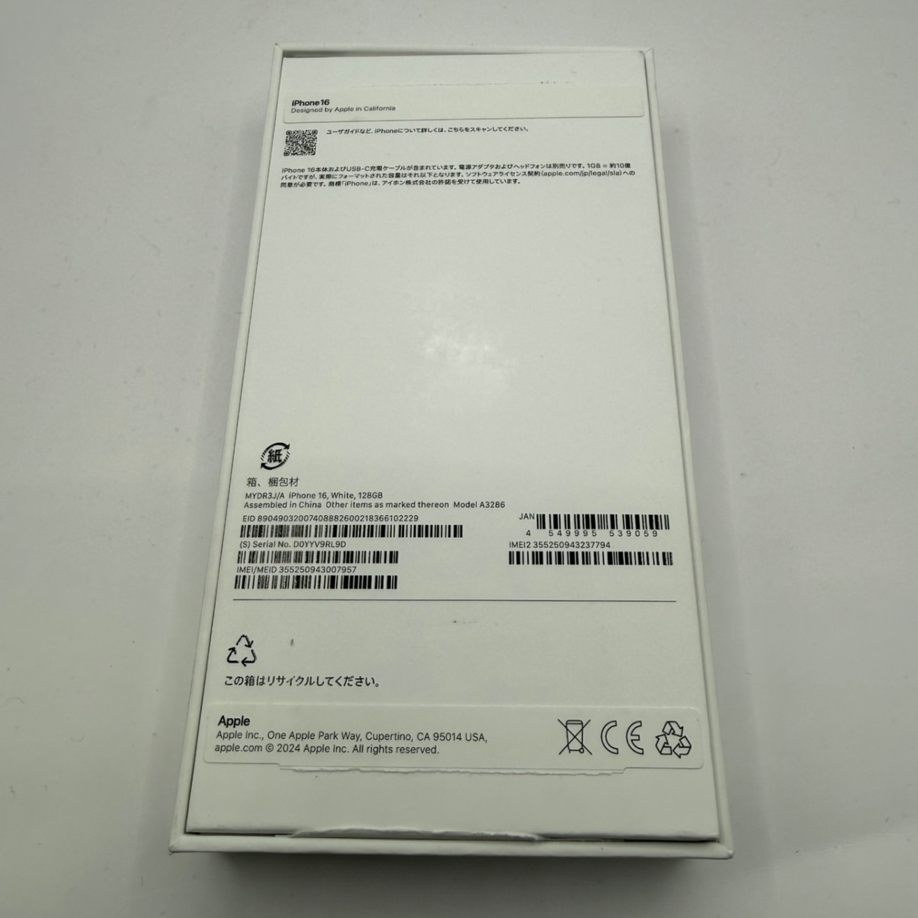 【未使用開封済み】iPhone 16 128GB ホワイト SIMフリー