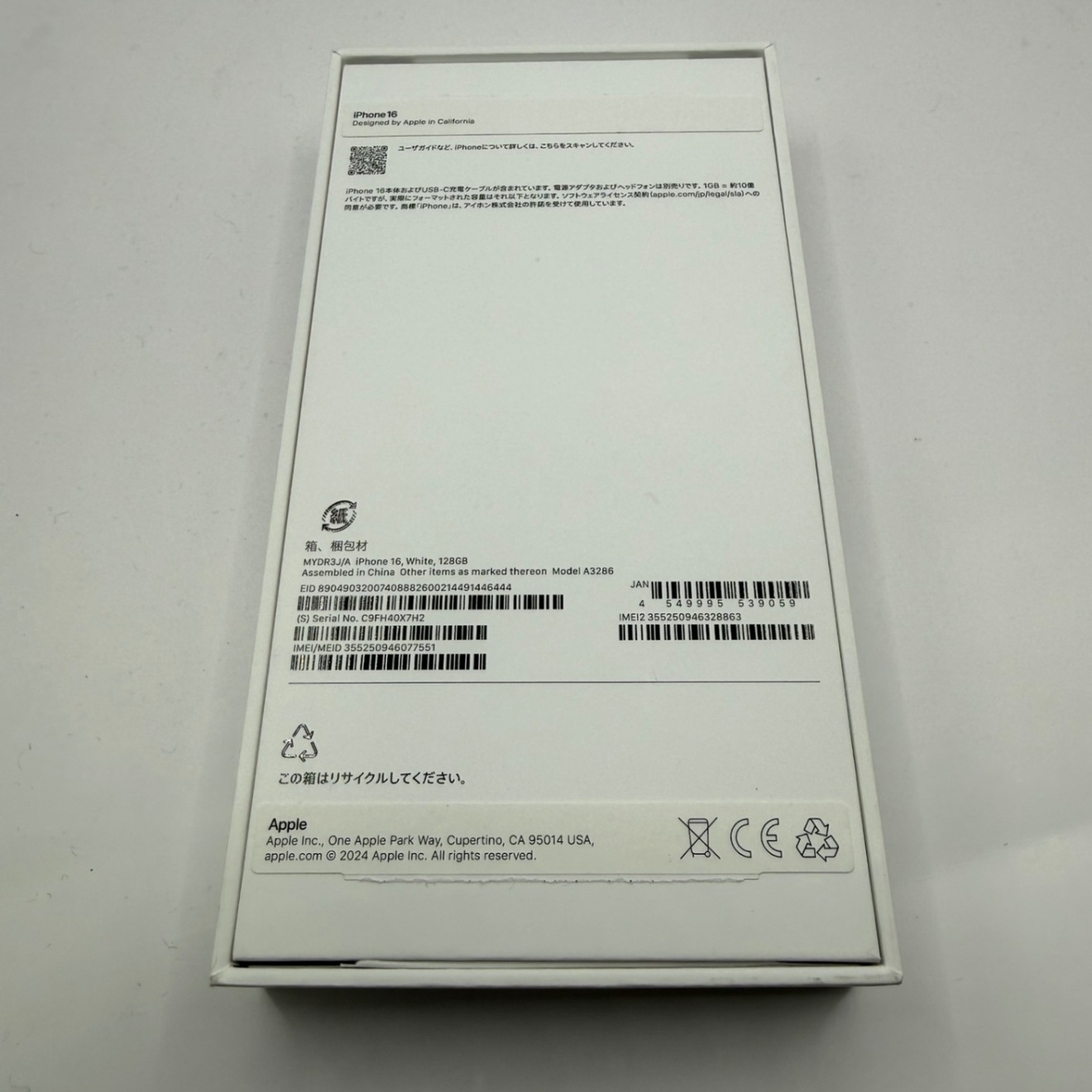 【未使用開封済み】iPhone 16 128GB ホワイト SIMフリー