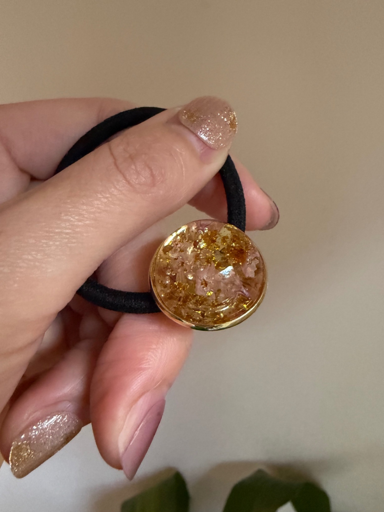 円形ヘアゴム、シンプルでスタイリッシュなデザイン。
