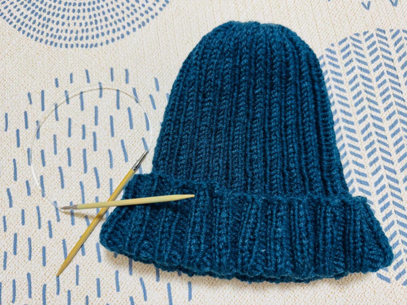 【スタート記念価格】シンプルな深海ブルーの手編みリブニット帽 ハンドメイド 一点もの