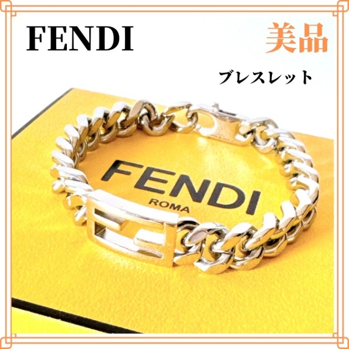 【美品】フェンディ FFロゴ バゲット リンクチェーン ブレスレット 男女兼用