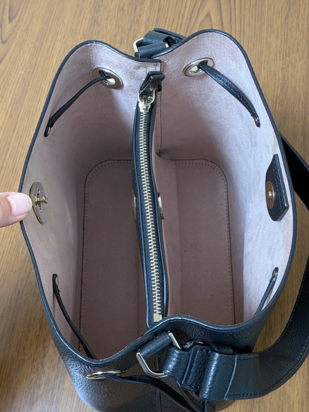 内部中央にファスナーポケットがぶら下がってます。内部は1室。