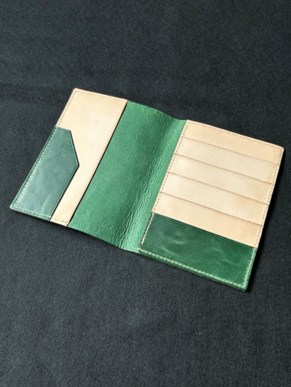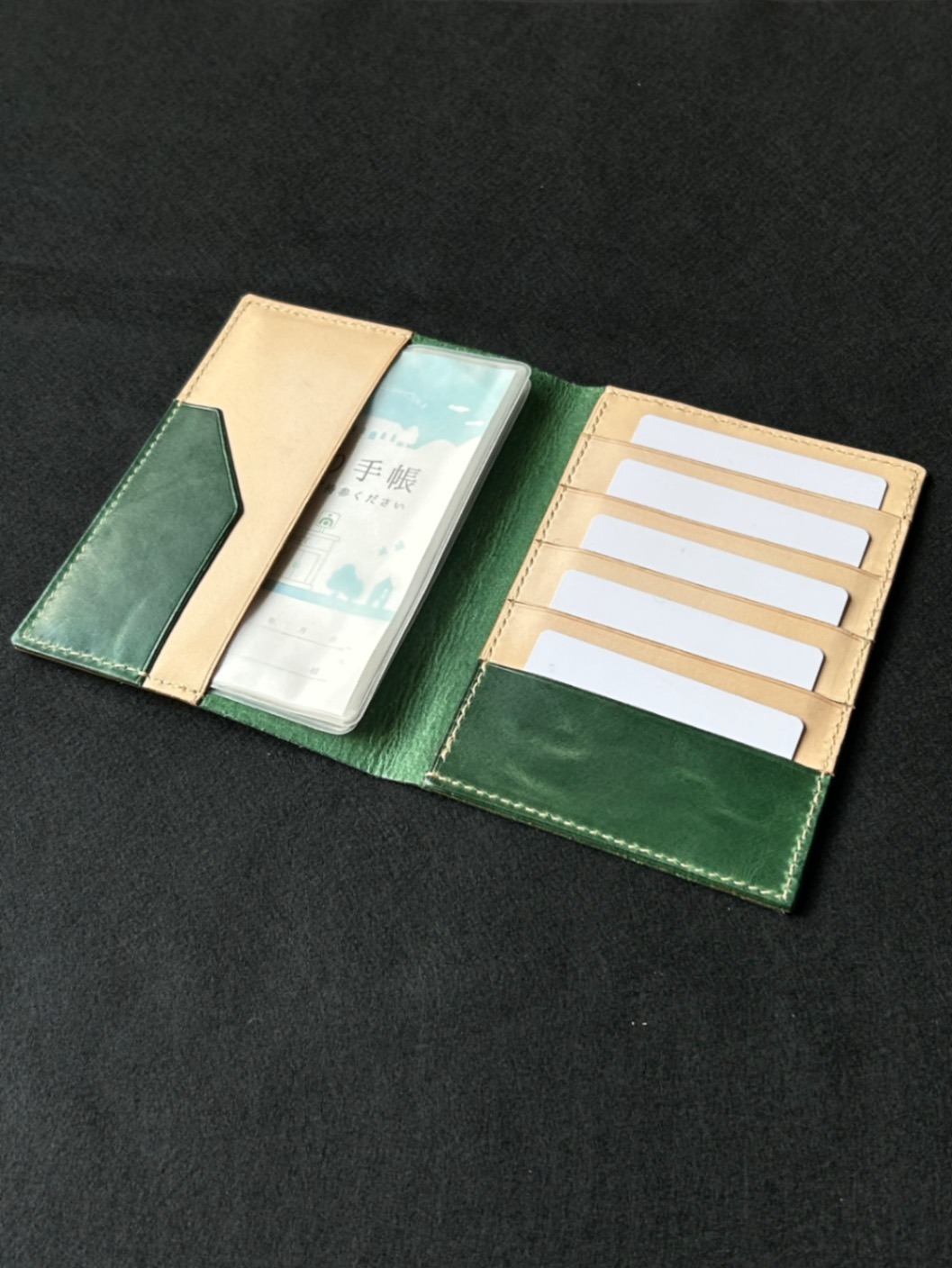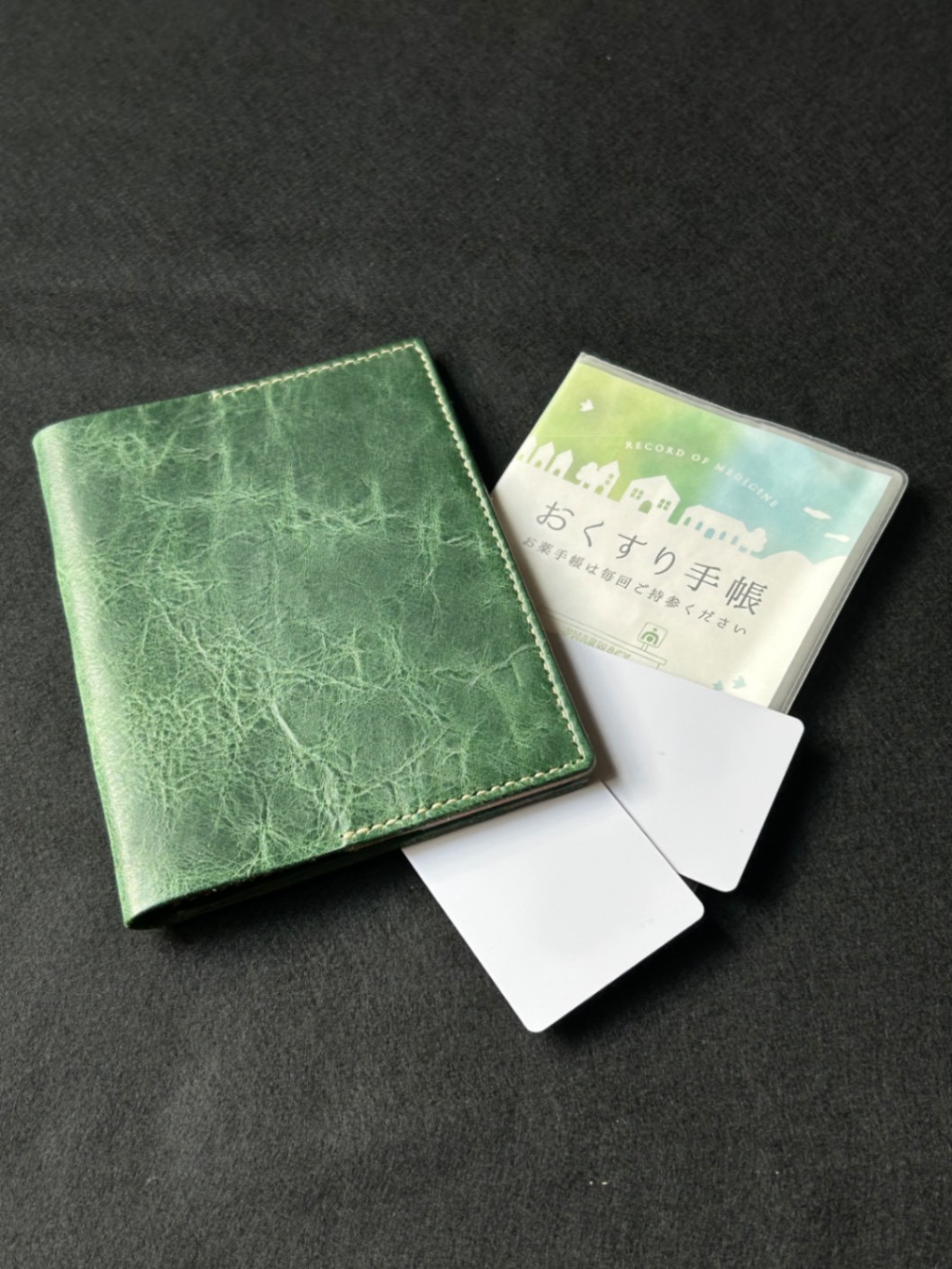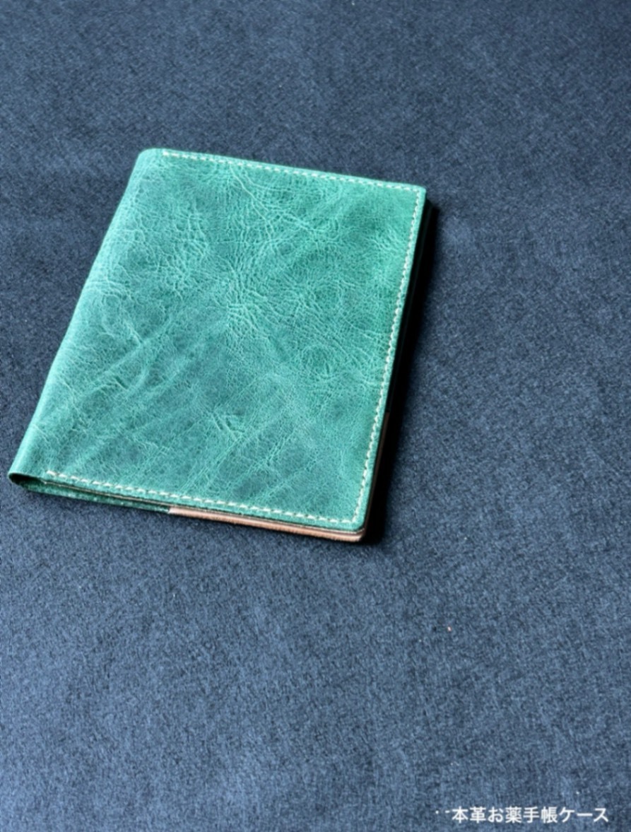 本革 お薬手帳ケース|手縫い仕上げ・グリーン(凛革シリーズ)
