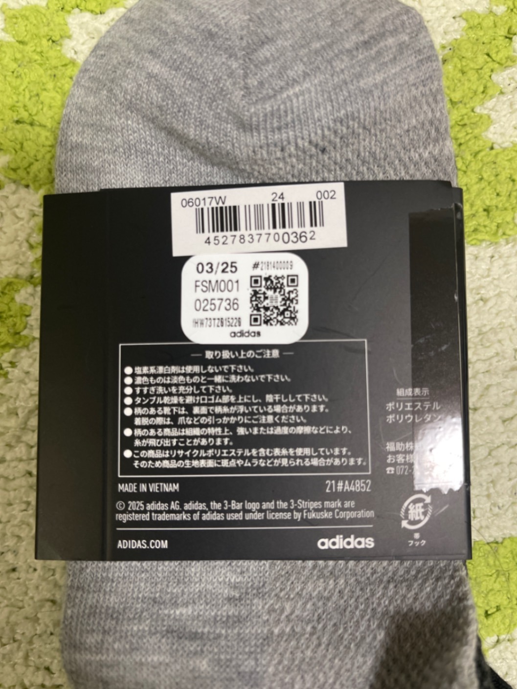 新品 靴下 くつ下 3足セット adidas アディダス 24〜26 黒 グレー