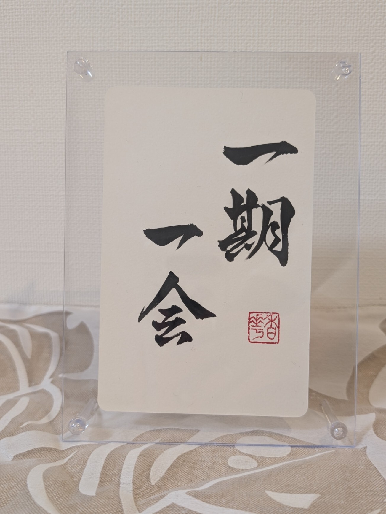 一生に一度限りの機会。人との出会いや、その瞬間を二度とない大切なものとして誠実に向き合う、という願いを込めて揮毫いたしました。