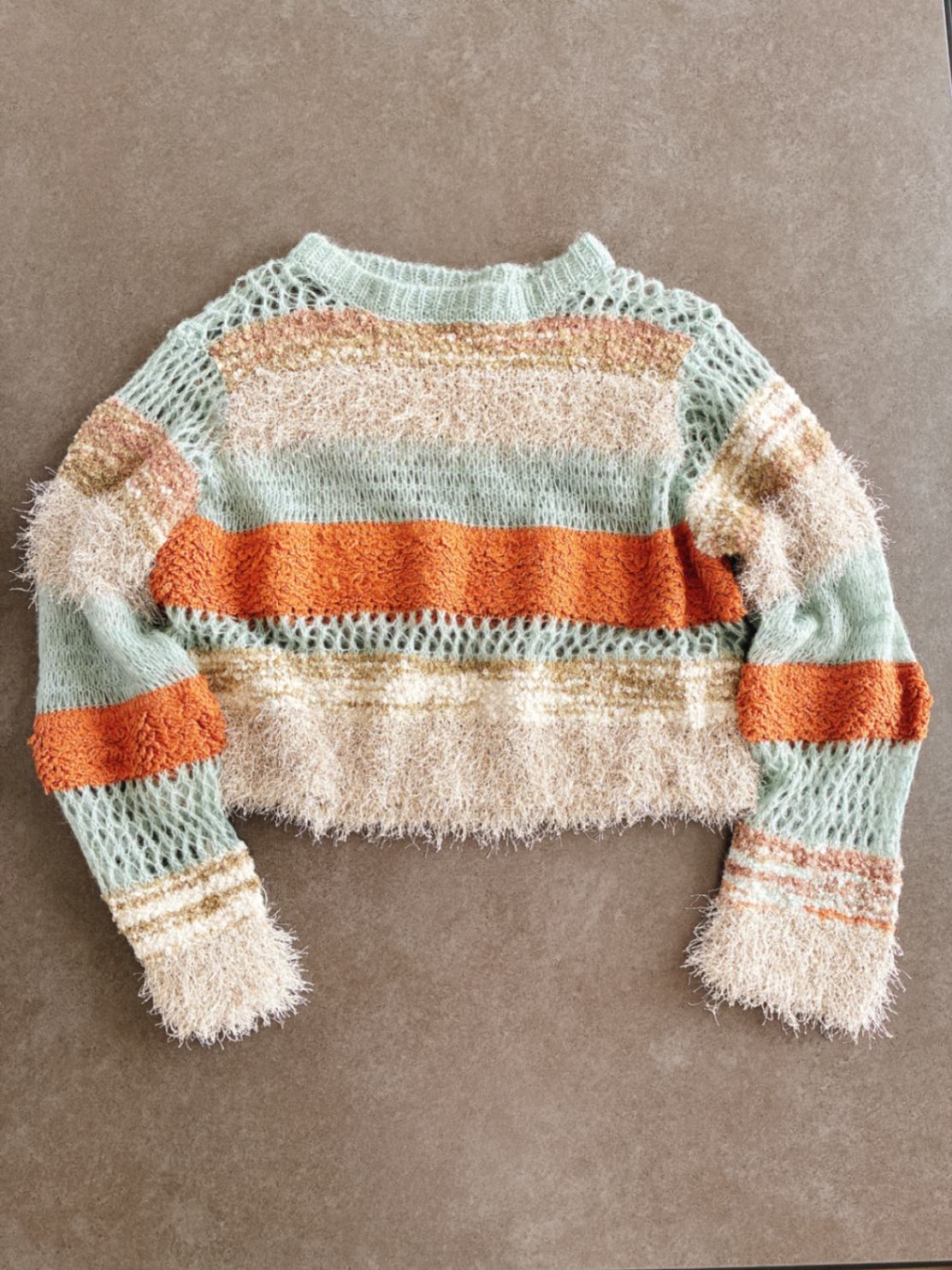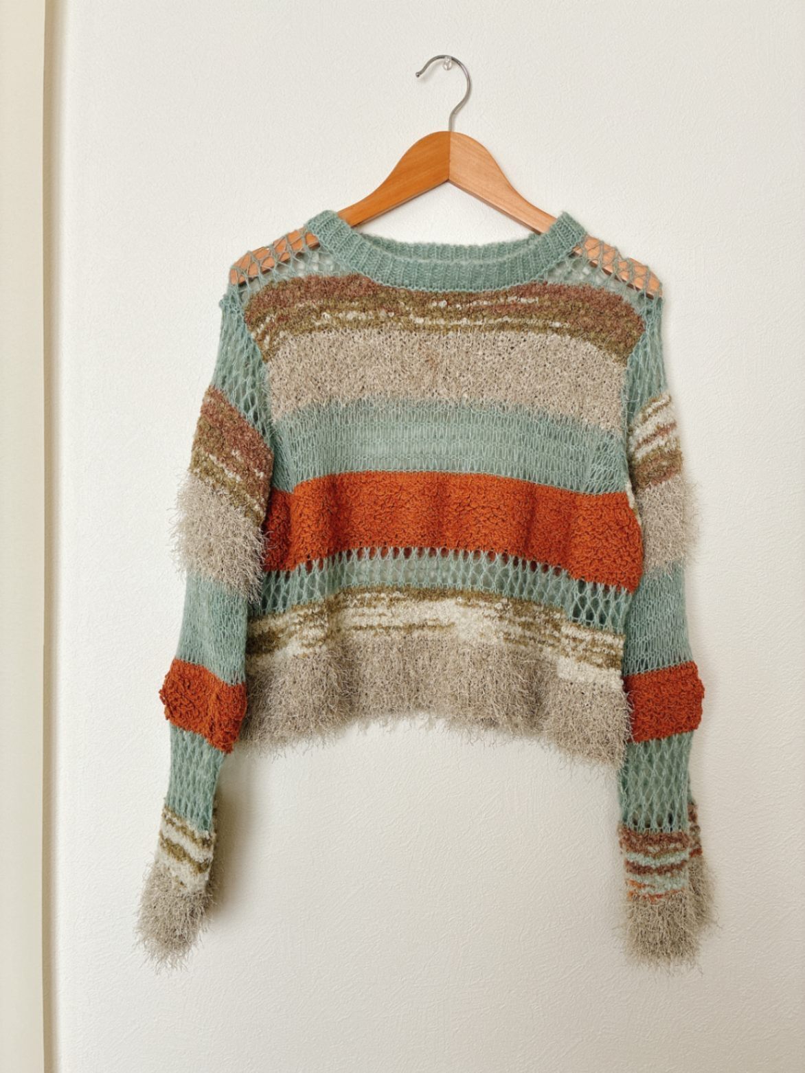 Ungridの様々な糸をミックスさせて編み立てた透かし編みのかわいいニットです!