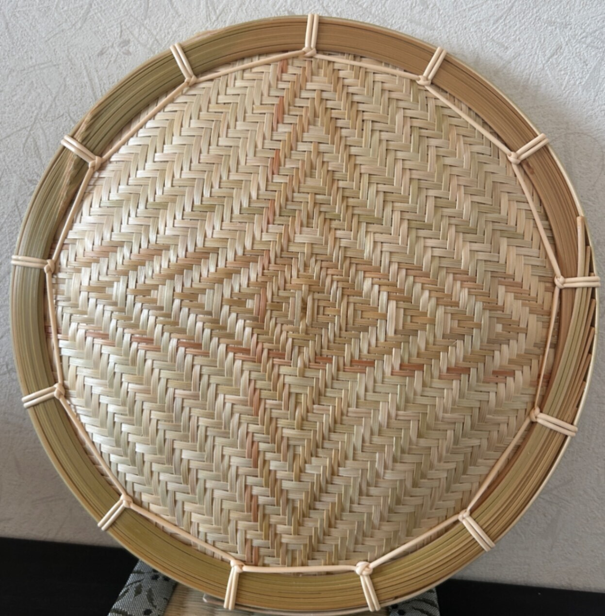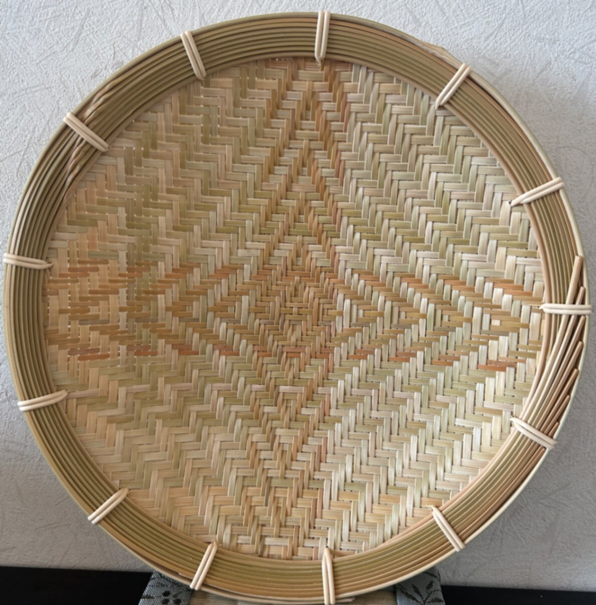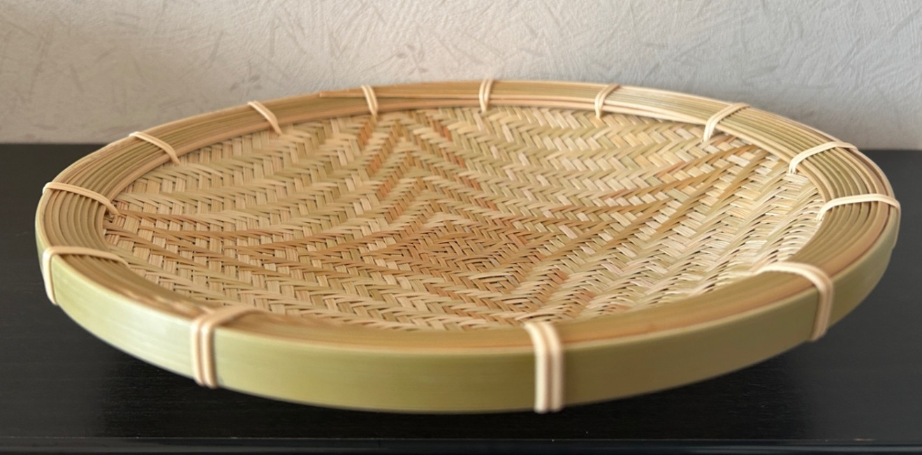 ☆真竹(福岡県)の生竹からヒゴを作り、一本一本丁寧に面取りをし、綺麗でしっかりとした「桝網代編み」のザルです。