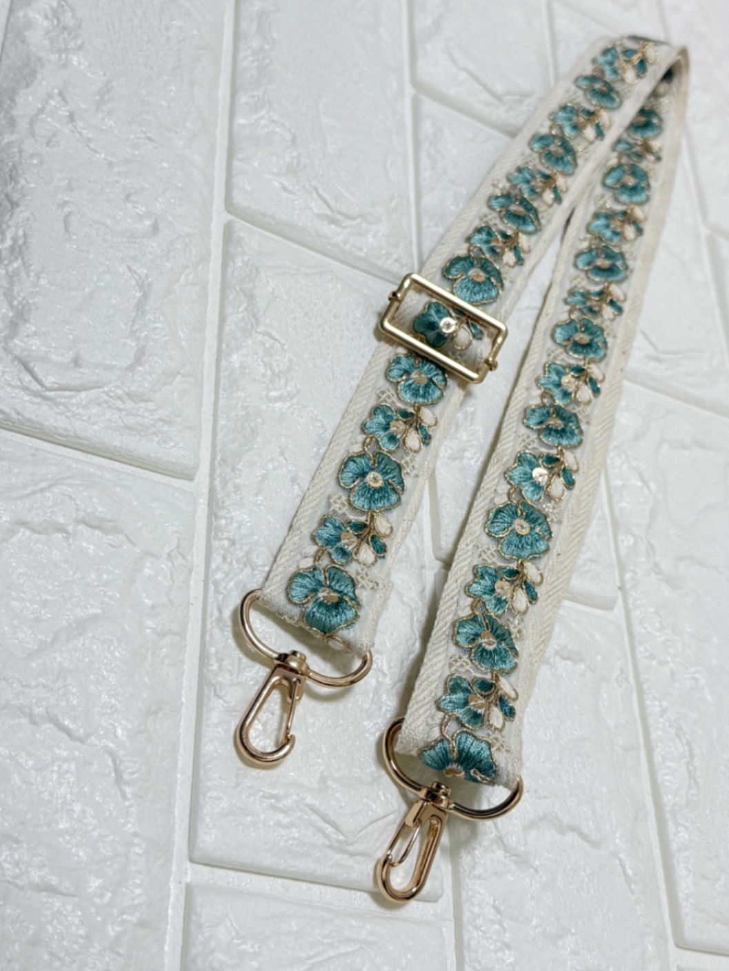 上品な刺繍とゴールド金具の組み合わせで、バッグやスマホショルダーのアクセントになります。