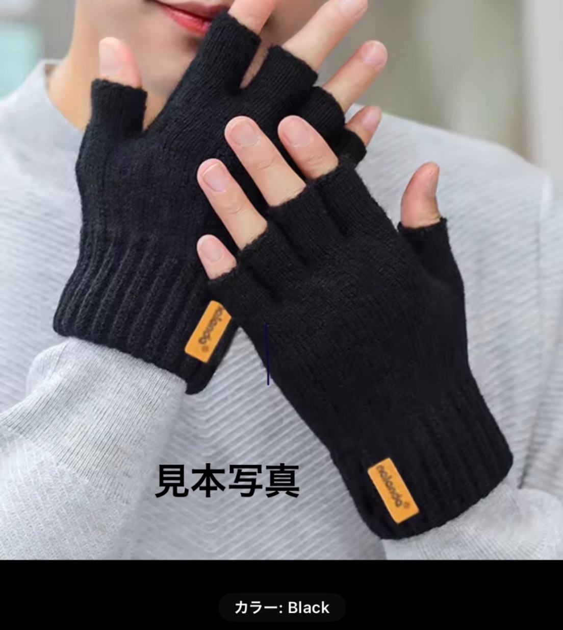 【新品】黒 ニット 手袋 指空き 指無し