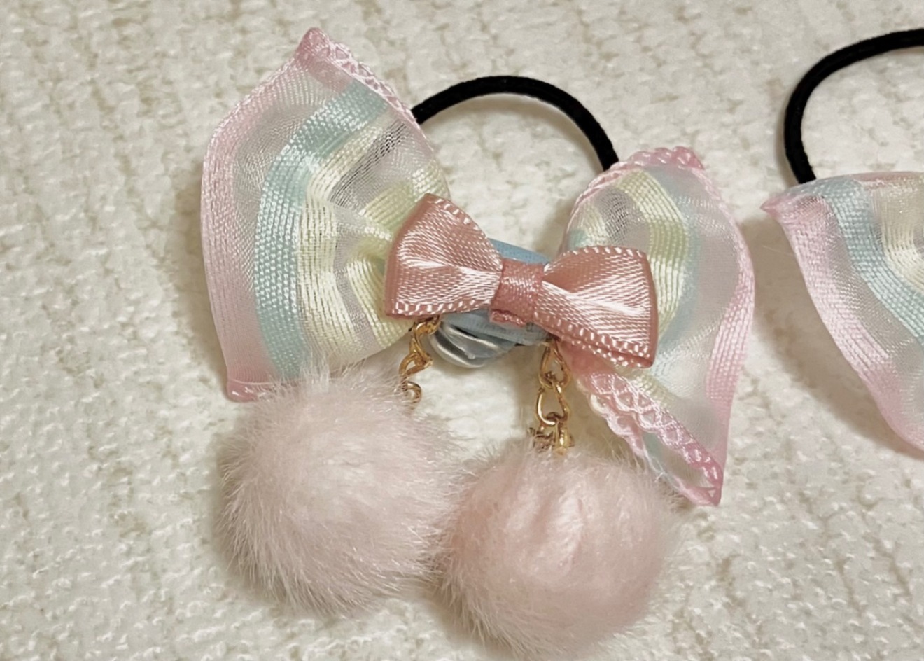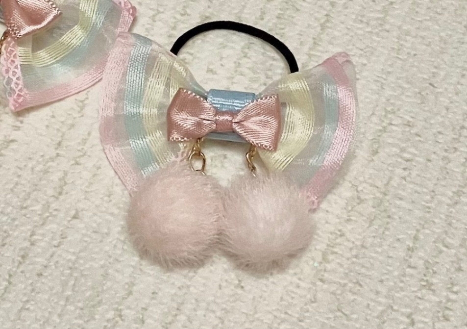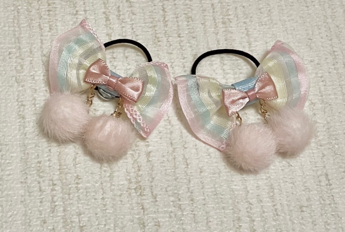 パステルリボンデコレーション・ヘアゴム2個セット