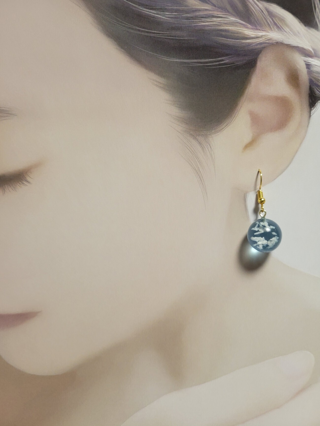 地球玉 空と雲のレジンピアスorイヤリング